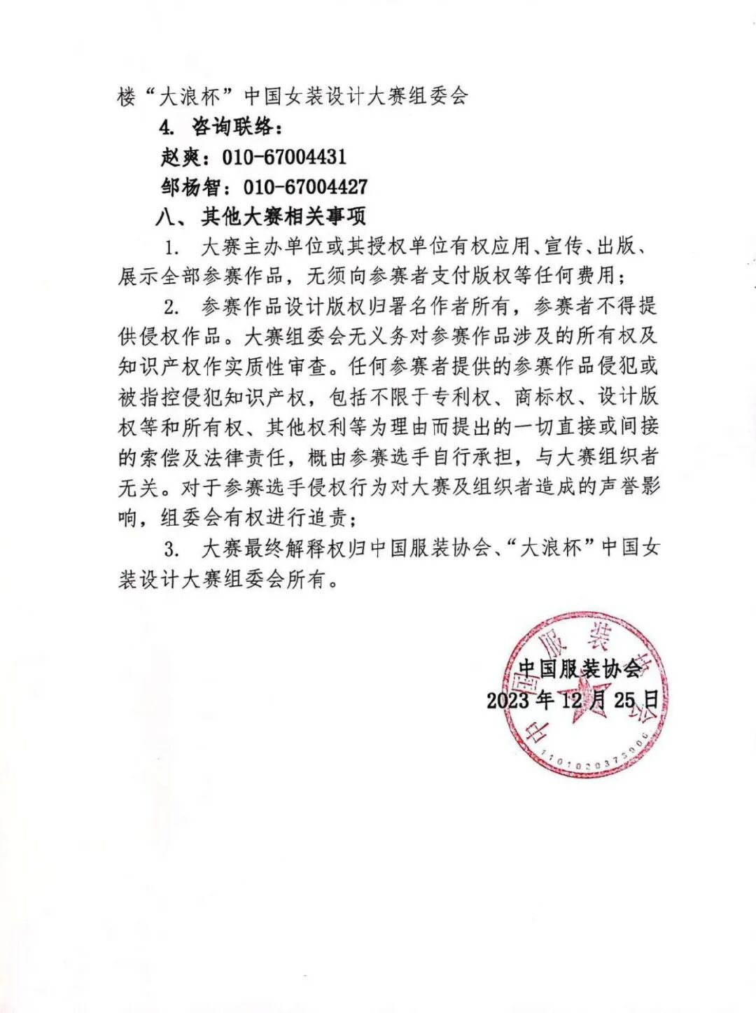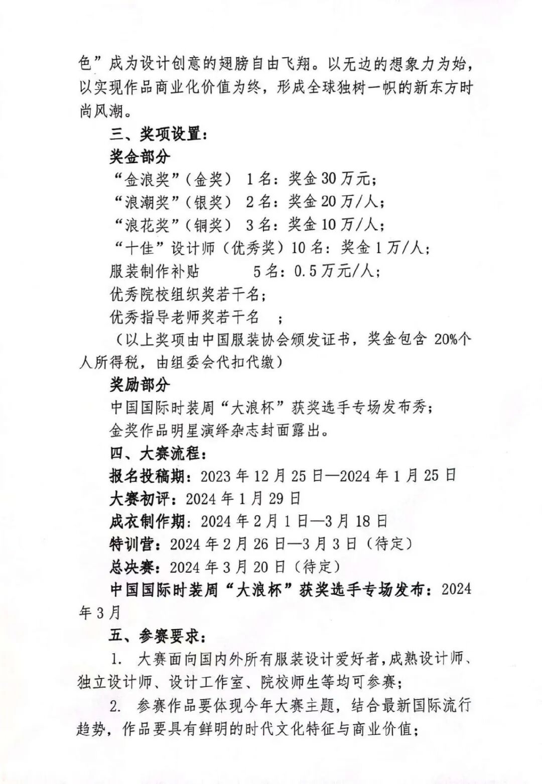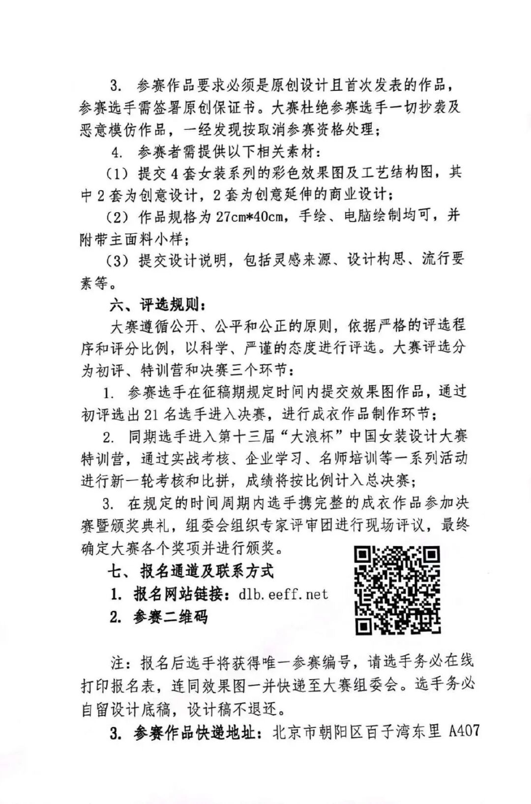 1. 第十三届“大浪杯”中国女装设计大赛截稿日期:2024年1月25日