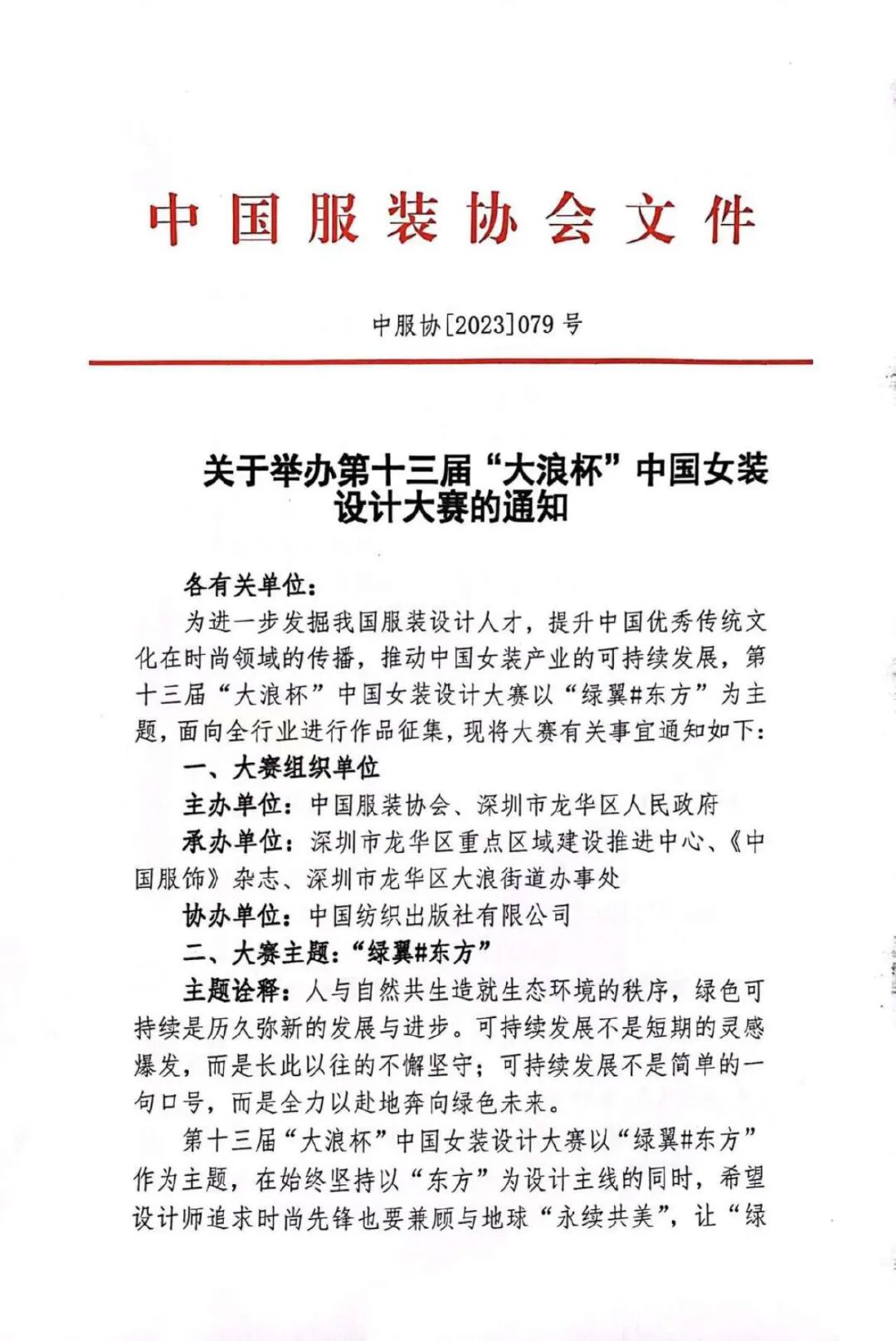 点击蓝字关注我们*“绿翼#东方”第十三届“大浪杯”中国女装设计大赛征稿事项特别说...