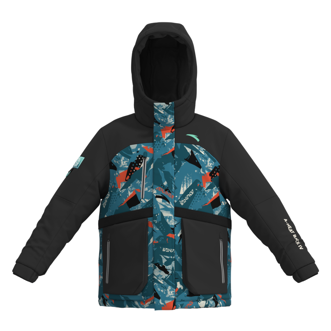 “热返四代”儿童羽绒服灵感来源于长白山地区,图案上使用意象化处理过后的长白山景象。采用了安踏儿童最新的热返IV代技术,将德国热返技术与3D结构完美结合,减少了热量的流失,提升了保温效果,同时热返层还具备透气性,让服装内部具有微气候循环,提升了舒适性。服装外体面料采用生物基防泼水剂处理,减少了水和能源消耗和环境污染。外观上运用全新的立体结构,花型采用凹面镜设计,利用光的反射发生聚焦时,来提升热返升温效果,同时立体结构存储更多空气,进一步提升了材料的隔热保暖性。