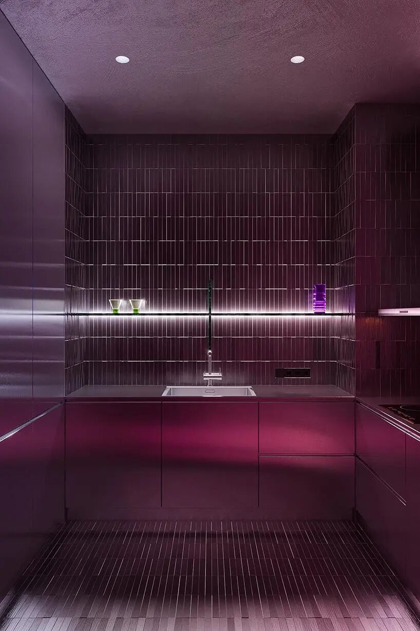 对于美妆及科技消费品而言,在包装上运用这一具有华丽神秘感的紫色调可为产品注入迷幻色彩。浓郁的午夜梅子色也适用于室内设计、零售和酒店空间设计中,彰显未来主义特质。