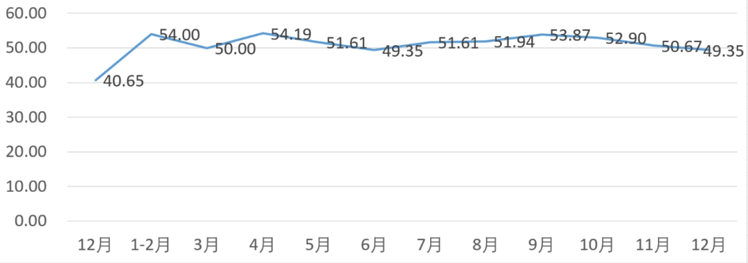 从管理者景气指数来看,总指数中,12月管理者景气指数为50.16,比11月的52.17下降2.01个百分点;经营环境指数为49.03,比11月的52.33下降3.30个百分点。