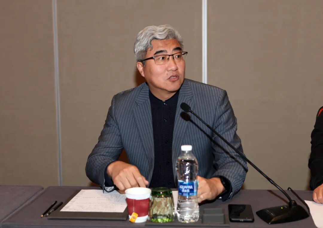 展览部项目总监韩彦军代表先进工作者发言。他谈到,从2008 年加入协会至今已经16 年,有幸陪伴CHIC从束发之年走到而立之年。刚做展位销售时心里还有些忐忑,是领导和同事们的鼓励给了极大的信心。陆续负责过童装、男装、休闲装等板块。2023年负责秋季展。工作中不断突破自己,迎接挑战。这些年取得的每一个进步,都离不开协会领导的信任和同事的帮助。未来,将会加倍努力,不负重望。