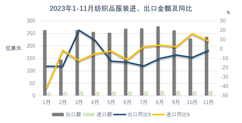 点击蓝字关注我们01 形势综述11月我国纺织服装出口延续回稳态势,同比下降1.1...