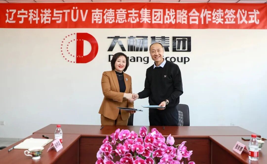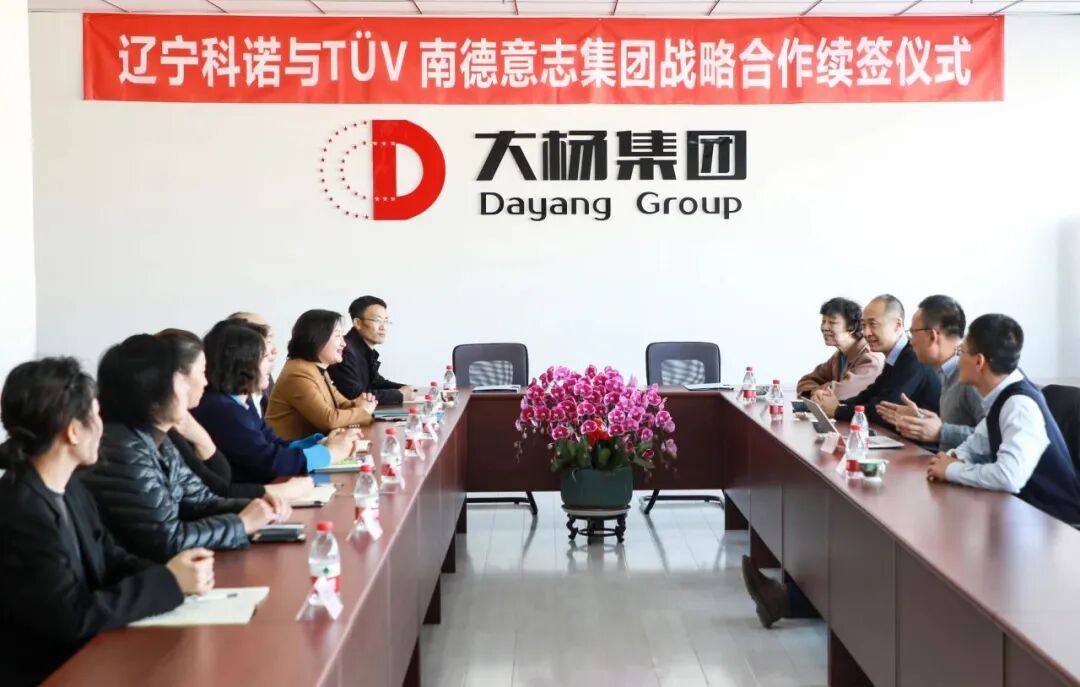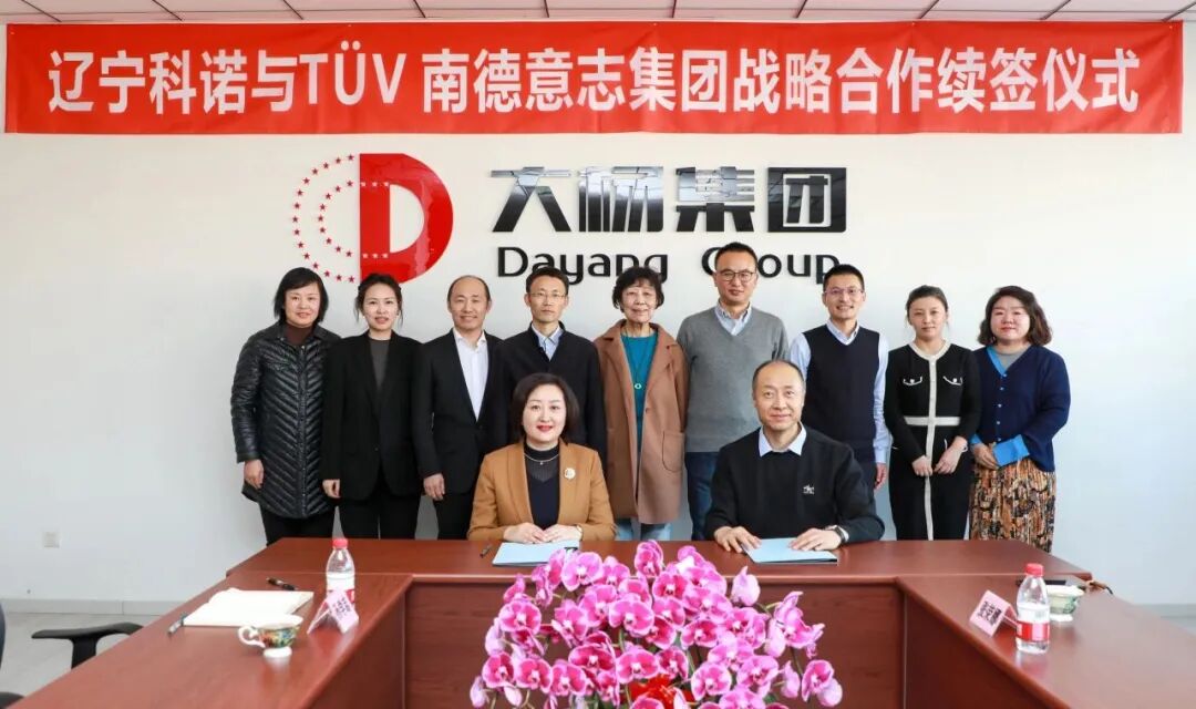 12月26日,中国服装协会副会长单位——大杨集团有限责任公司旗下子公司辽宁科诺与TÜV南德意志集团战略合作续签仪式在集团开发区分部六楼会议室举行。大杨集团党委书记、总经理胡冬梅,TÜV南德意志集团北亚区高级副总裁、人力资源负责人兼北方区总经理王卫杰出席签约仪式。