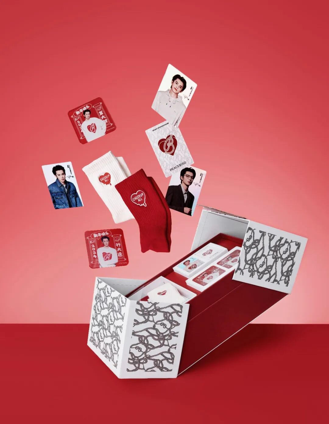 将真挚祝福融入每一处细节,太平鸟新年特别甄呈龙年“新”意礼盒,丰富新年周边带来多重惊喜,与亲友共享充满期待的新春佳节。品牌惊喜推出太平鸟全球品牌代言人王鹤棣专属新年礼盒,全球限量1220份,不止收入代言人同款爱心毛衣及代言人闪卡,还有为新春佳节贴心设计的mini冰箱贴及新年系列袜子,从细节处将节日氛围拉满。新年礼盒已于12月20日起在天猫商城限时限量出售120份,太平鸟官方小程序也已同步开启购买预约,并于12月24日在北京、上海、深圳等12座城市门店限时上线。