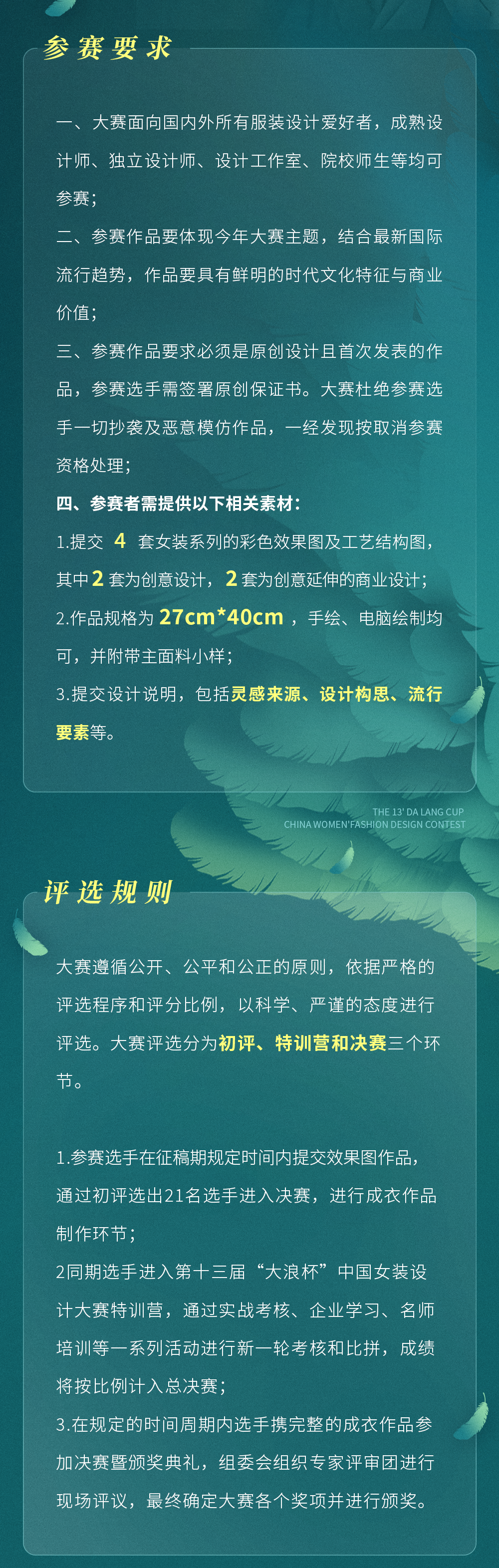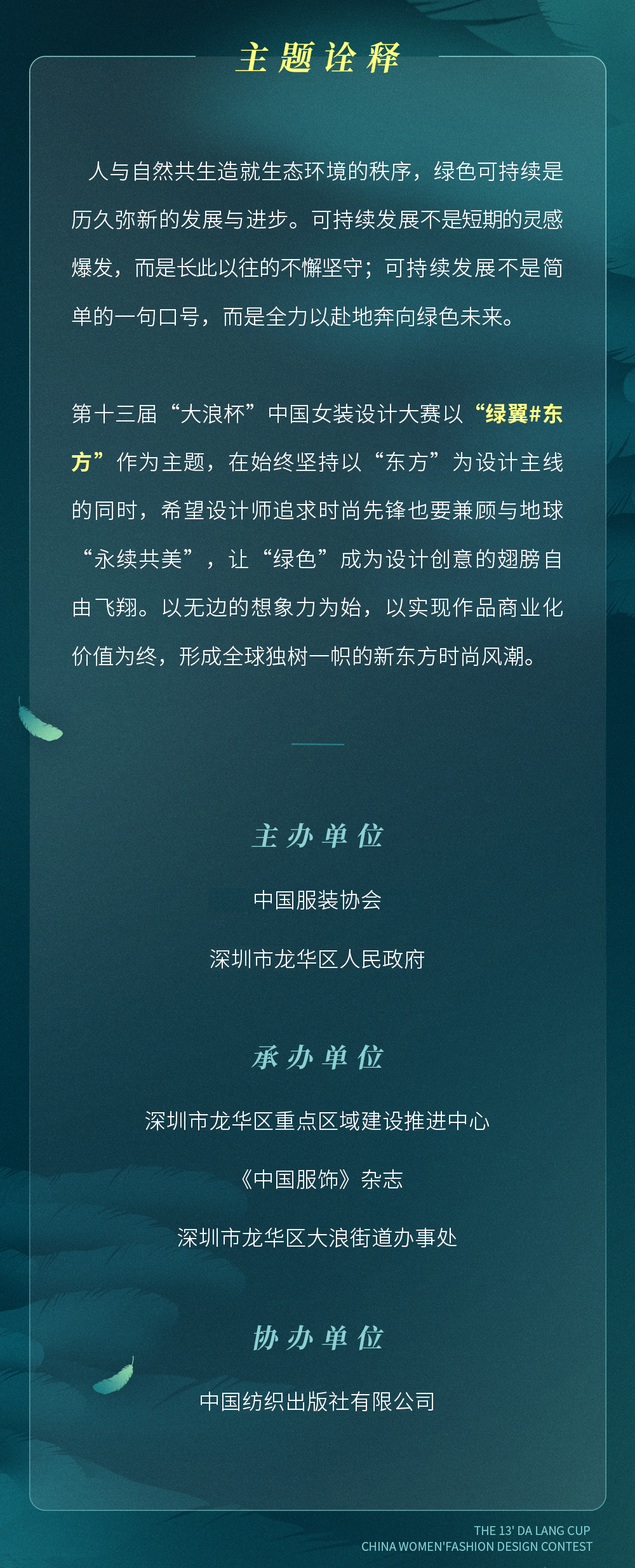 点击!启动!“绿翼#东方”第十三届“大浪杯”中国女装设计大赛带着112.5万元大礼来了!