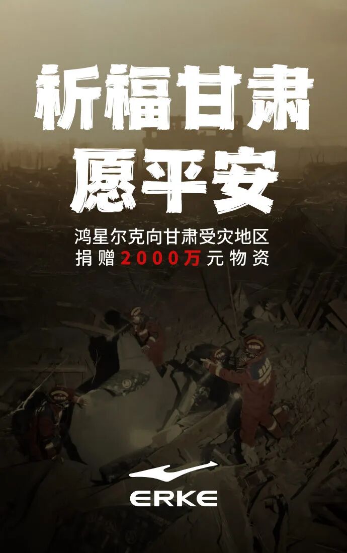 据了解,据不完全统计,安踏捐赠4000万元物资;中乔体育捐赠1500万元物资;鸿星尔克捐赠2000万物资;361°集团捐赠1000万元物资;李宁集团捐赠2000万元物资;匹克捐赠1000万物资;特步集团捐赠2000万元御寒物资。森马携手贾乃亮迅速捐赠1万件羽绒服、2000套保暖衣,当日发车紧急驰援甘肃地震灾区,为受灾群众送去温暖!