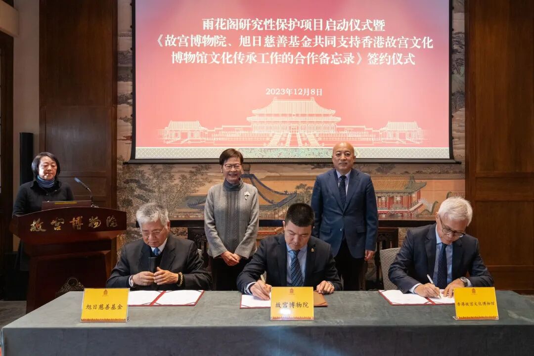 近日,香港旭日集团有限公司与故宫博物院、香港故宫文化博物馆在故宫博物院敬胜斋正式签署《故宫博物院、旭日慈善基金共同支持香港故宫文化博物馆文化传承工作的合作备忘录》。香港特别行政区前任行政长官林郑月娥,故宫博物院院长王旭东,香港故宫文化博物馆馆长吴志华,旭日慈善基金代表、香港旭日集团有限公司副董事长兼总经理、中国服装协会副会长单位——真维斯国际(香港)有限公司董事长杨勋出席签署仪式。据悉,此项合作为期五年,由旭日慈善基金资助一系列项目,包括:发起“香港故宫旭日学人计划”、“香港与内地青年故宫实习计划”、“香港学生中华文化体验计划”、筹办大型专题展览和制作中华文化类英文教育资源等方式,进一步加强香港与内地的文化交流,发挥香港内外联通优势,传播弘扬中华优秀传统文化,讲好中国故事、香港故事,提升中华文化在国际上的传播影响力。