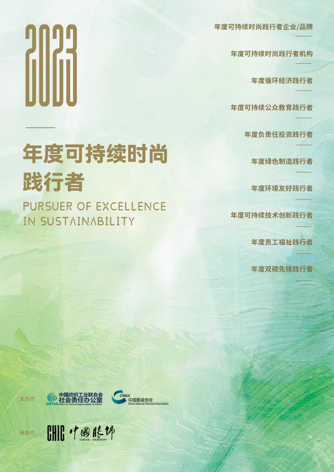 由中国服装协会、中国纺织工业联合会社会责任办公室主办,中国国际服装服饰博览会(CHIC)、中国服装协会会刊《中国服饰》承办的“可持续践行者 Pursuer of Excellence in Sustainability”自2020年正式启动以来,已经成功举办三届,旨在致敬、表彰那些在可持续时尚领域砥砺前行、与全球时尚产业及人类福祉共进退的优秀企业。