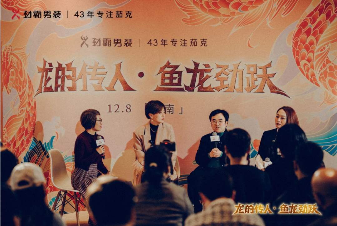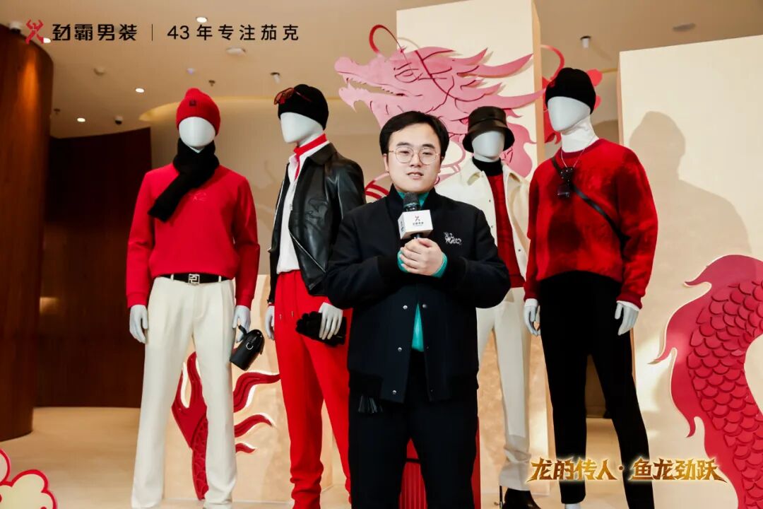 12月8日,中国服装协会常务理事单位——劲霸男装十二生肖贺年系列——“龙的传人•鱼龙劲跃”龙年系列产品在劲霸男装郑州国贸风尚中心全国首发。在充满黄河、嵩山、钧瓷、竹编等中原文化意象的郑州国贸店,劲霸男装CEO兼创意总监洪伯明、品牌副总裁龚妍奇,及多位时尚界人士和河南当地知名人士,现场沉浸式品鉴龙年新品,共话中原大地源远流长的龙文化。