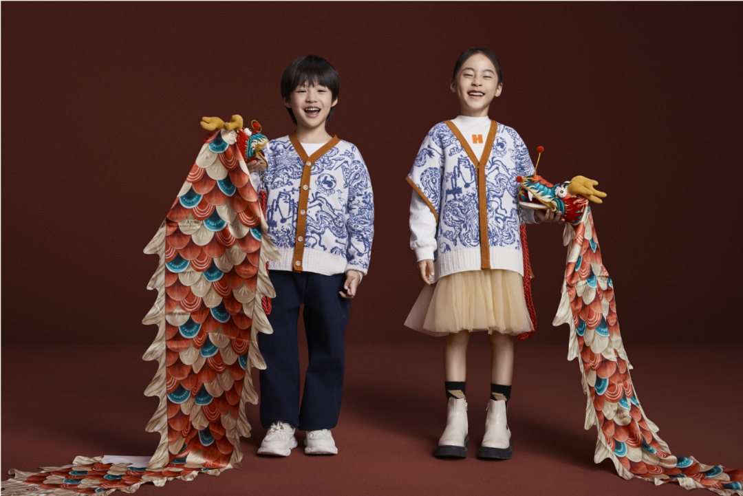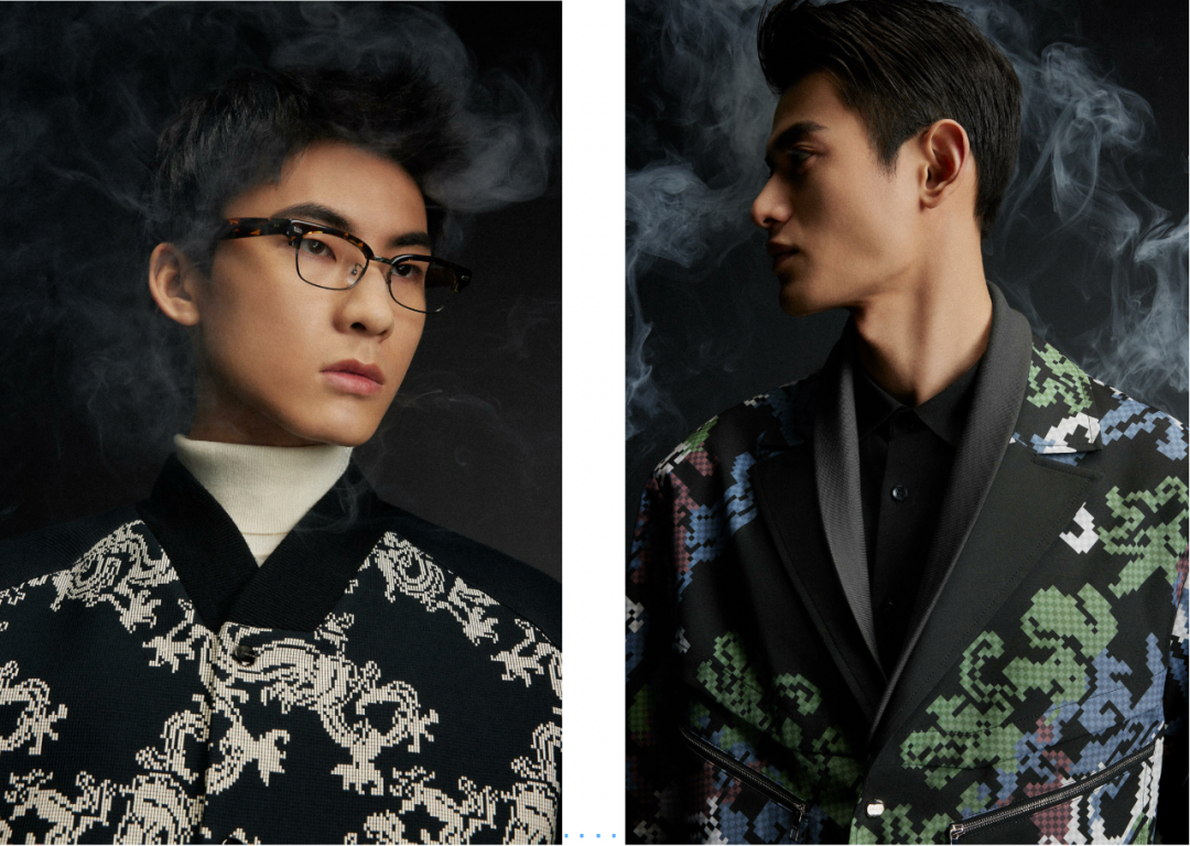 HONG甄选米兰时装周秀款,并用水墨龙纹图案加以点缀,搭配KB HONG经典图腾玉龙纹毛衫,时尚而富有质感;精品配饰线KBXNG,将龙元素巧妙融入精品配饰细节中,显得时尚百搭;童装Little Hong则将青花瓷龙纹、传统十二章纹等传统元素融入童装设计中,凸显了趣味性与精致感。