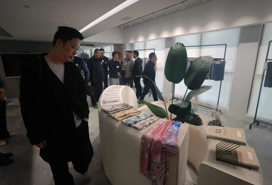 在达利国际总部代表的陪同下参观了集团的SHOWROOM展厅,并向成员们介绍了集团的历史以及制造基地、分公司、销售团队的分布情况,拥有45年历史的达利集团已经是集产品开发设计、制造、印染,到服装制造都可以一条龙化的实现,多元化、灵活性的生产能满足各类客户的需求,产品从国内走向了国际,例如2014年北京的APEC峰会和2016年G20峰会里中的领导人服装及赠送的国礼中丝绸的产品都是达利的产品。