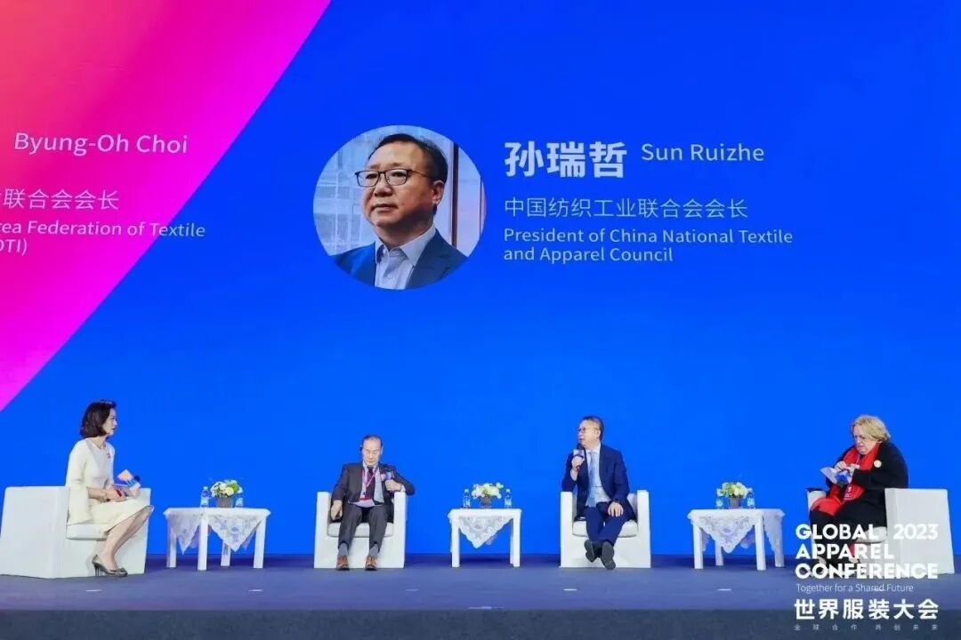 围绕“国际合作,共创未来”主题,中国纺织工业联合会会长孙瑞哲,韩国纤维产业联合会会长崔炳五,意大利时尚工业联合会副主席、意大利米兰The One Milano成衣展首席执行官Elena Salvaneschi现场开启了高端对话。