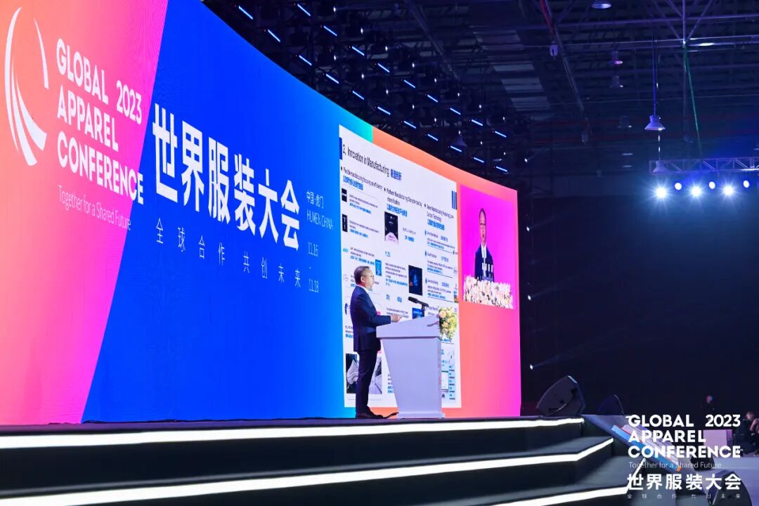 渠道创新日渐成熟。以服务与体验为核心,线下渠道加快品质升级、下沉布局。比音勒芬2022年有 1191 个终端门店,覆盖全国核心商圈、高端百货等。行业体验店、智慧门店大量涌现,为消费者提供沉浸式服务,实现精益化管理、整合式营销。产业集群、专业市场深度触网。“中国商品市场综合百强”前十位中有8家与纺织服装相关,线上线下融合是普遍形态。2022年,常熟服装城市场线上交易规模超1000亿元。星图数据显示,2023年“双十一”全网销售额达11386亿元,其中服装1370亿元占14%,鞋包671亿元占6.9%,运动户外357亿元占3.6%,服装相关产品仍是第一品类。线上渠道正从传统电商向直播电商、内容电商、跨境电商延展。2022年SHEIN营收实现227亿美元,同比增长54%。数字人、虚拟秀场、沉浸式展厅、虚拟社区等元宇宙实践加快探索。品牌创新快速发展。内容化。打造有共情有主张的时尚品牌。关注圈层和亚文化,潮牌、非遗和民族服饰快速发展;关注环保理念、社会责任,可持续时尚成为品牌的重要基因。渠道创新层出不穷。中国国际时装周等时尚活动的全球流量、声量稳步提升,成为品牌成长的重要生态圈和能量场。依托小红书、TIKTOK等平台,衬衫老罗、蕉内、ubras等一批新兴品牌崛起。女装品牌独束,2018年成立销售额仅为59万元,2022年在阿里平台销售额达到4.32亿元。新渠道成为制造品牌、消费品牌、区域品牌融合发展的重要场景。比如康赛妮、鄂尔多斯羊绒等已成为抖音电商上优质产品的标签。国际化方兴未艾。通过国际并购和全球布局打造品牌,如安踏集团收购FILA、迪桑特、KOLON、ARCTERYX、SALOMON等,波司登推动中国原创设计与国际接轨,产品已在8个欧洲国家400多家品牌集合店销售。岂曰无衣,与子同袍。面对新故相推、变乱交织、加速演进的世界变局,推动和平发展、互利合作、共同繁荣的世界现代化,全球服装产业需要共商共建、互信互利、同心同德。要践行全球发展倡议,在“破与立”中找到发力点。坚持以发展为中心,在繁荣经济、创造就业、改善民生中创造更大价值。融入新一轮科技革命和产业变革,把握新型工业化规律,推动产业高端化、智能化、绿色化、融合化转型。夯实制造基础,强化融合创新,发展新质生产力。要践行全球安全倡议,在“竞与合”中找到平衡点。竞有略,合有道。在逆全球化有所抬头的背景下,我们要推动消除市场、投资、技术壁垒,加强对话交流、拓宽合作领域、提高合作层次、发挥协同优势,实现共同安全、合作安全、综合安全及可持续安全,保障全球服装产业链供应链稳定。要践行全球文明倡议,在“异与同”中找到共鸣点。尊重世界文明多样性,充分挖掘不同历史和国情、不同民族和习俗的美学价值。坚持开放包容、与时俱进,相互支持、相互成就,创新应用、创造转化。推动全球时尚产业在平等对话中互融互通、在求同存异中共创共享,各美其美,美美与共。孤举者难起,众行者易趋。让我们坚持发展优先、安危与共、文明互鉴,在构建人类命运共同体中彰显时尚担当,在世界现代化进程中贡献锦绣力量。