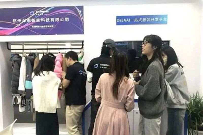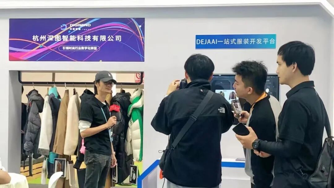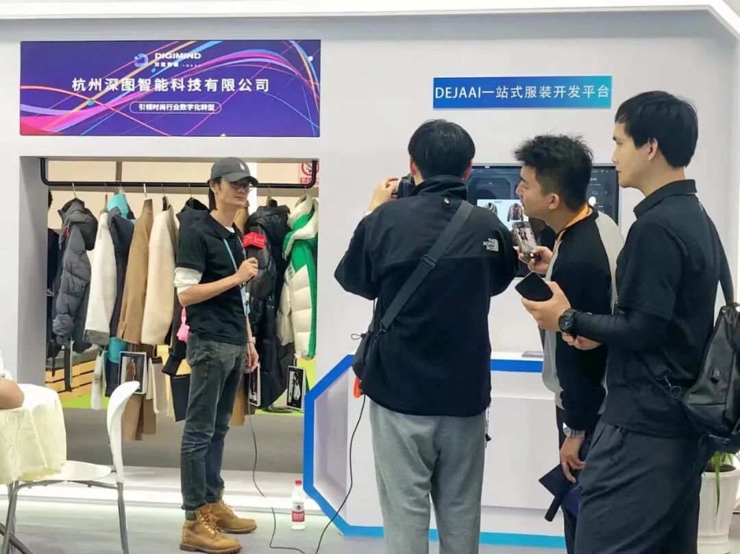 深图智能深耕于服装行业,并研发出DEJAAI-一站式开发平台,作为Al服饰设计服务提供商,在互联网大会上、博览会上和各行业先进服务商进行交流,通过人工智能技术赋能服装产业,吸引众多参观者驻足交流。并且始终秉持为服装产业的数字化转型和智能化升级提供全方位的解决方案。本次展会,针对不同需求打造全方位展示,涉及软件,软件功能,以及在体验区可以实际操作使用软件设计服装与触摸样衣。无一不展示“面辅料采购、设计、制版、样衣制作一站式解决”。展厅内我们的样衣展示区,现场所见的服装即是用软件设计打版出的样衣。“从有设计的想法,到成品样衣的交付,只需75小时,极大缩短开发周期。”不仅博得了观众的眼球也吸引了各媒体平台的注意,并接受了《CCTV》、《1818黄金眼》等栏目的采访。