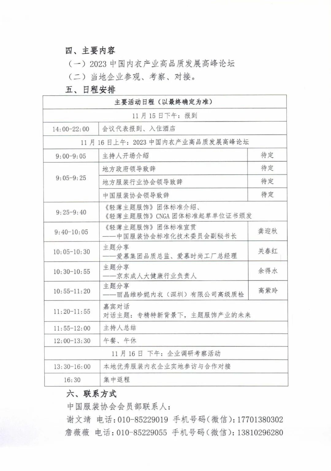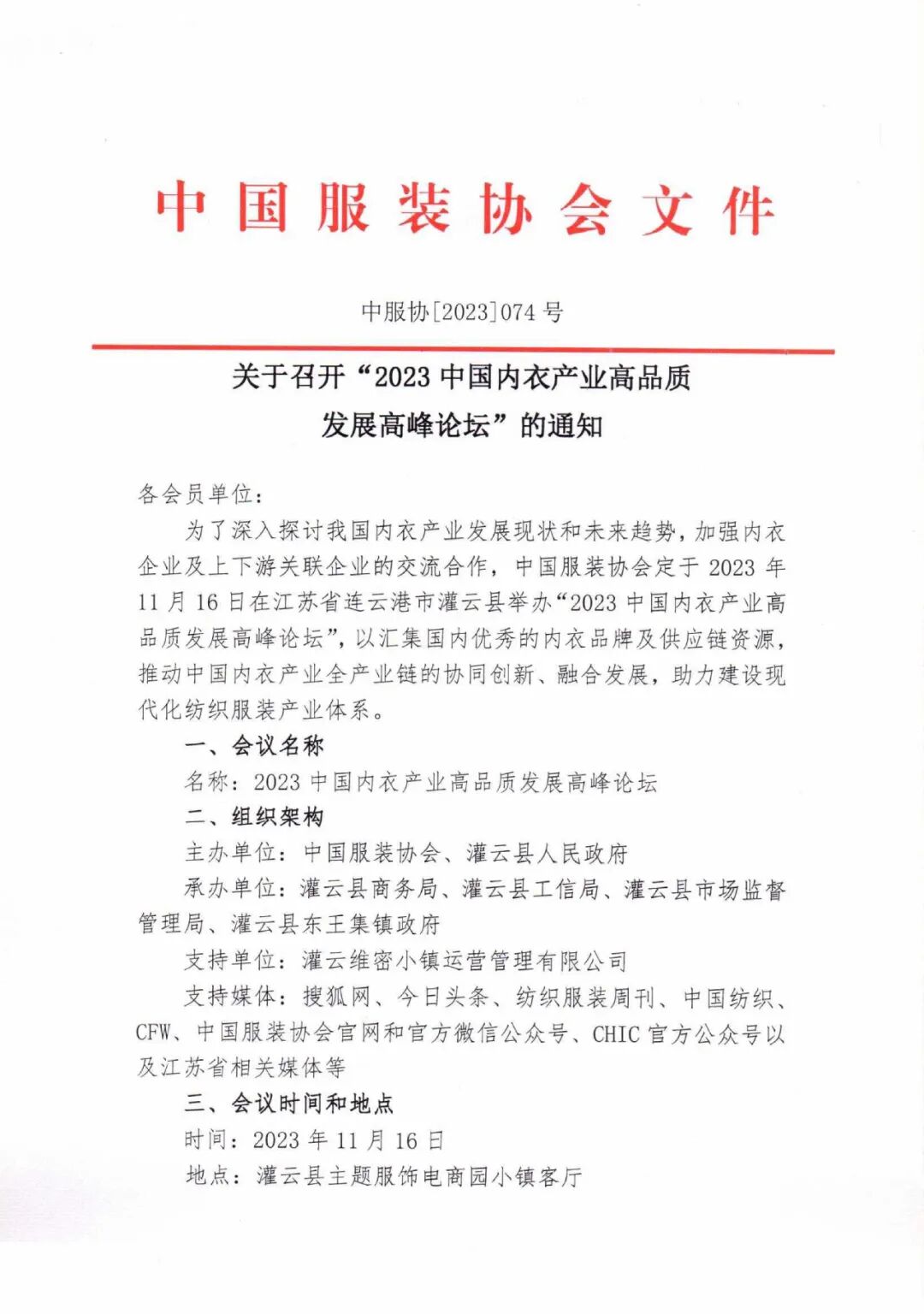 关于召开“2023中国内衣产业高品质发展高峰论坛”的通知