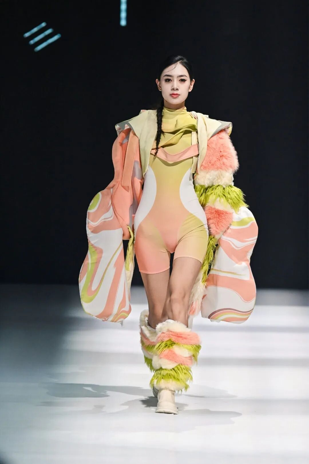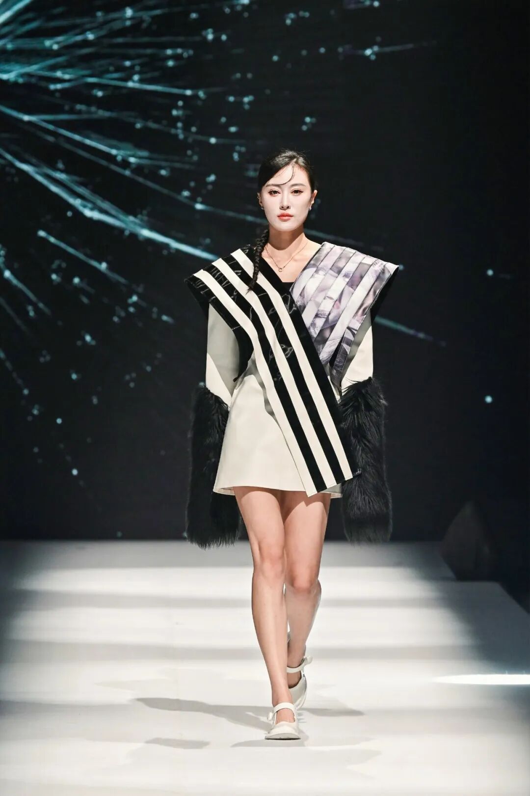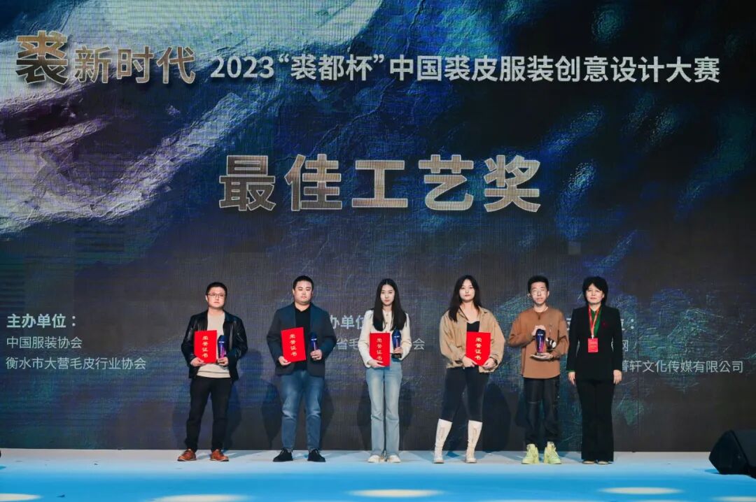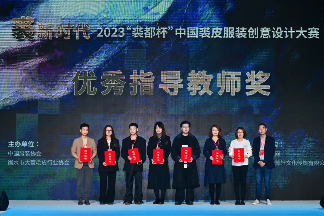 此外,北京服装学院王羿、孙宁宁,江西服装学院陈龙、付志臣,鲁美·文化国际服装学院蒋卓君、王杨、王鑫、王贯,中原工学院服装学院安红,长春人文学院王冬,燕京理工学院艺术学院陈良雨、魏鸿宇,西安工程大学屈杨获得了本次大赛的优秀指导教师奖。据了解,本次大赛的参赛作品除了必须充分体现本次大赛的设计主题和宗旨,而且还需要符合流行趋势、具有创新性、实用性和市场流通性。大赛评委认为,较往届而言,本次大赛涌现的设计作品,在创意设计方面紧紧把握住了“裘新时代”主题中的“新”这一设计核心,除了在创意设计方面也有了长足的进步,而且在制作工艺以及商业价值方面体现出更高的水准,同时,通过在细节设计方面的深度挖掘,让传统的裘皮设计更具时尚化,更容易实现与其他衣物的时尚穿搭,从而更贴近时尚多样的服装服饰消费市场,这非常有利于裘皮服装不断扩展消费领域。最佳创意设计奖代表、长春人文学院学生郭洪林表示,通过把在学校里学习到的理论知识和设计理念落地到成衣上,从面料色彩、款式出发,再结合到实际的舞台走秀效果,这一过程使得自己对服装设计师这个职业有了更进一步的认识和了解。评委们表示,原创设计是服装产业链上的重要环节,是服装、时尚行业的灵魂内核,培育更多的市场化原创设计人才,不仅有力推动了市场化设计力量水平的不断提升,而且也将赋能大营裘皮产业的高质量发展,助力我国服装产业从“服装大国”向“时尚强国”迈进。