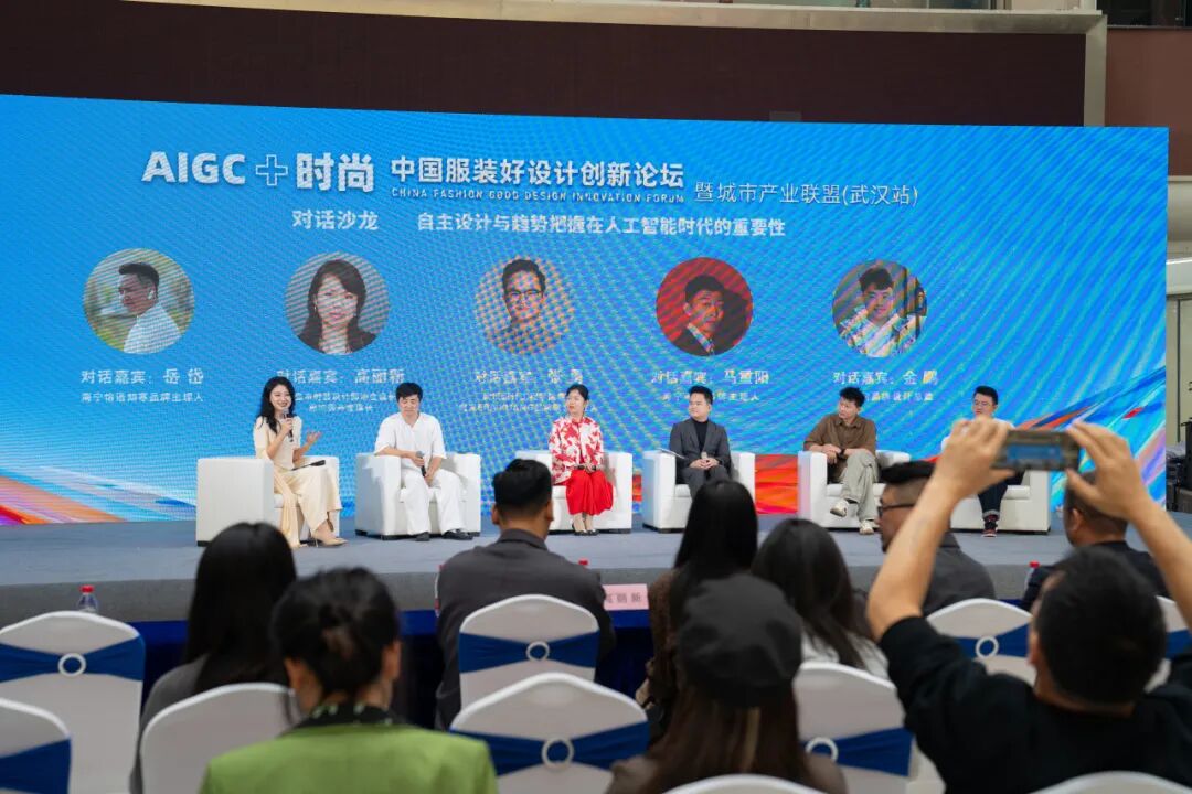 对话沙龙环节,以“自主设计与趋势把握在人工智能时代的重要性”的主题,来自海宁的设计师代表与里品牌主理人马重阳从AI软件使用角度上来讲是整体缩减设计成本;怡语知寒品牌主理人岳岱认为AI智能软件让设计更加高效地市场化运营;花拾间品牌设计总监金鹏认为AI智能为设计师拓宽了灵感来源;武汉设计工程学院教师、时况ERA KUANG品牌联合主理人张勇认为在设计教育方面智能软件非常有效的实现概念化设计;青岛市时装设计师协会会长、恩瑪秀丹董事长高丽新表达了AI智能可以进一步加强设计灵感的提升,是设计师的一个很好工具想法。