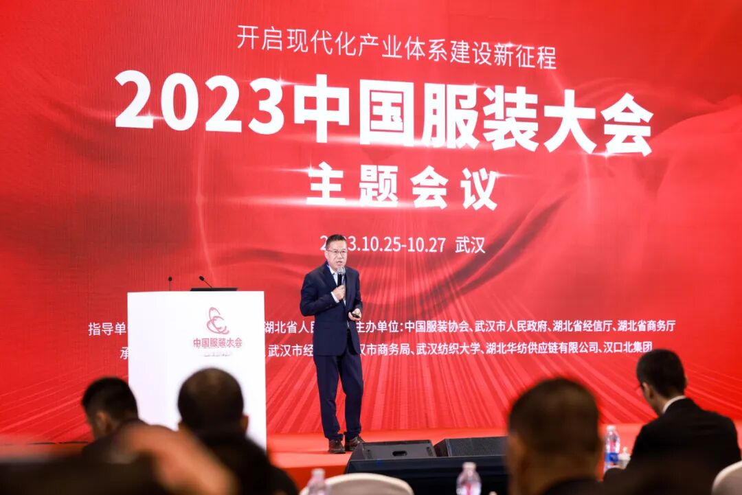 党的二十大明确提出“建设现代化产业体系”,为新时代中国服装行业高质量发展指明了方向、提供了遵循。建设现代化产业体系,是推动高质量发展的必然要求,是我们在未来发展和国际竞争中赢得战略主动的重要支撑。以新发展理念为引领,瞄准世界科技革命和产业变革方向,加快构建具备高端化、智能化、绿色化特征和符合完整性、先进性、安全性要求的现代化产业体系,10月26日,2023中国服装大会暨中国服装协会七届六次理事会于武汉正式启幕,大会以“开启现代化产业体系建设新征程”为主题,携众锚定全球产业结构和布局调整过程中孕育的新机遇,紧握行业战略重构和变革发展期的时代红利,带领中国服装企业开辟新领域、制胜新赛道。2023中国服装大会由中国纺织工业联合会、湖北省人民政府指导,中国服装协会、武汉市人民政府、湖北省经信厅、湖北省商务厅主办,黄陂区人民政府、武汉市经信局、武汉市商务局、武汉纺织大学、湖北华纺供应链有限公司、汉口北集团承办。在10月26日的大会主题会议中,2023中国服装大会邀请高水平专家及高能级企业,在新时代共建纺织现代化产业体系的背景下,围绕近几年中国服装产业热点、企业发展战略、科学技术实践等诸多议题,为业界同仁带来前沿洞见与标杆分享,在2023年即将收官之际为中国服装产业再添旺火。中国纺织工业联合会副会长、中国服装协会会长陈大鹏主持大会主题会议。