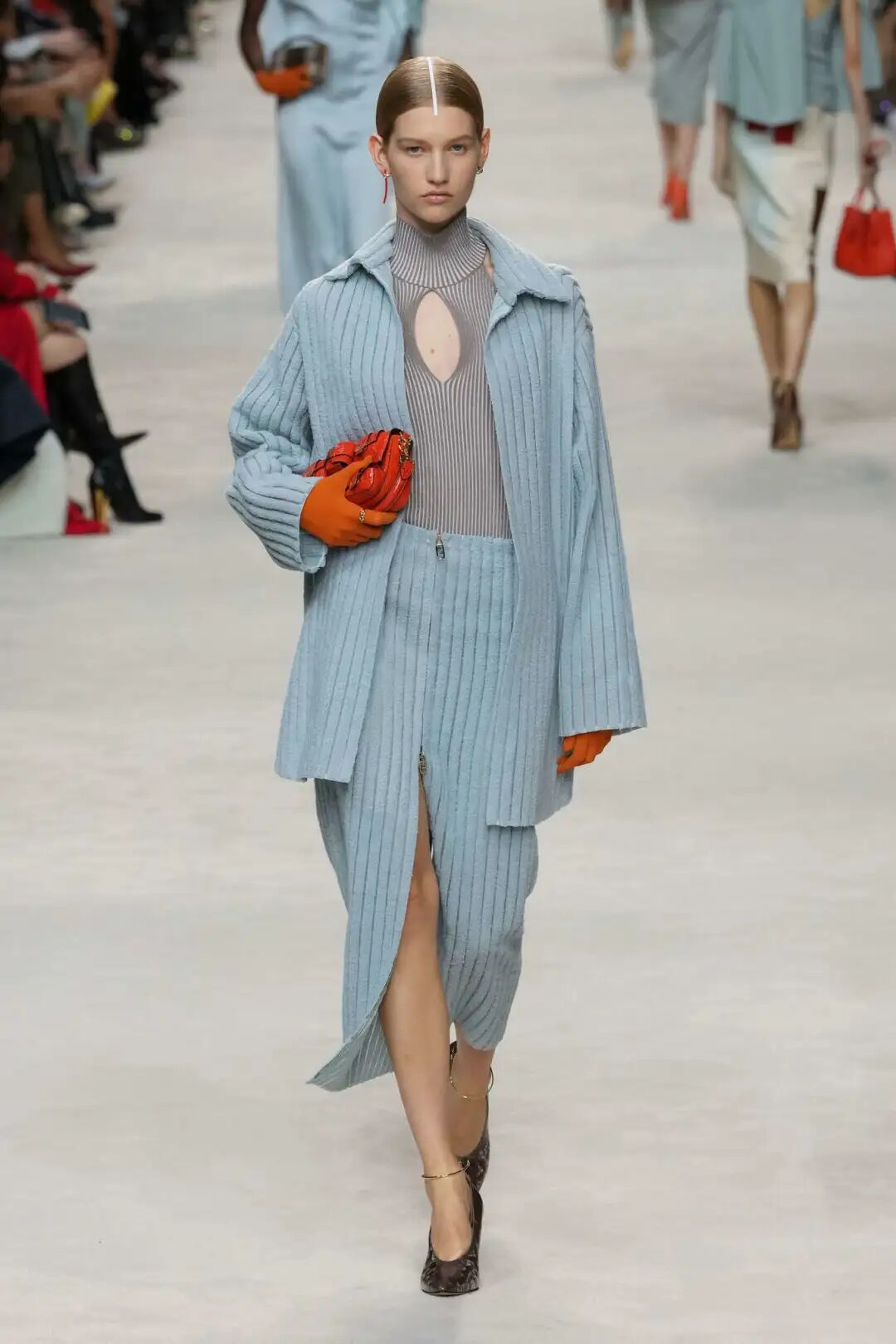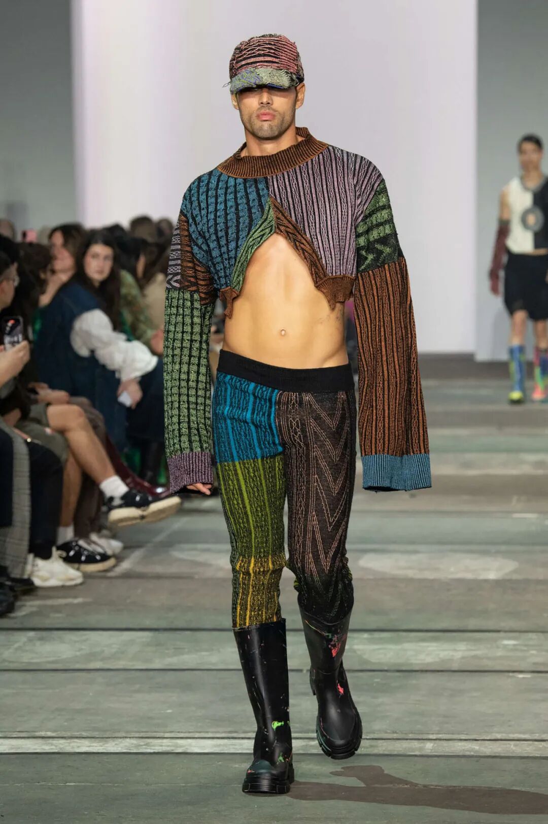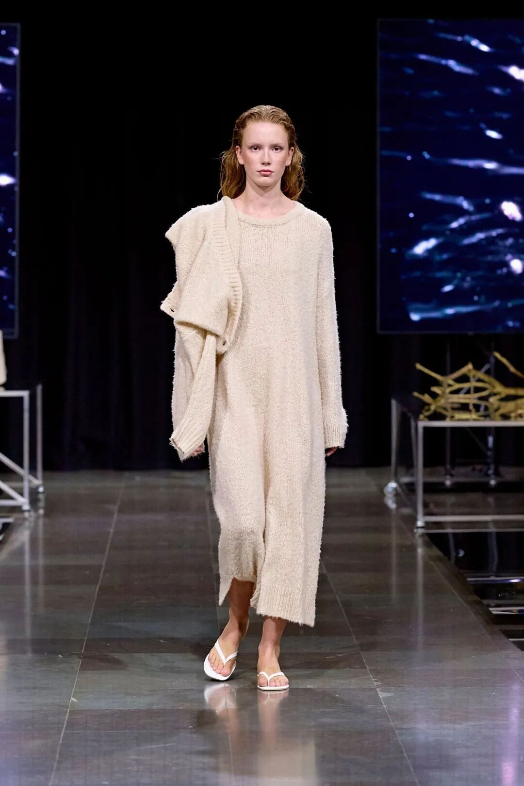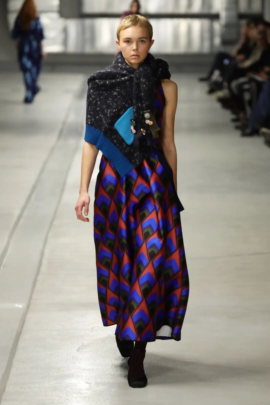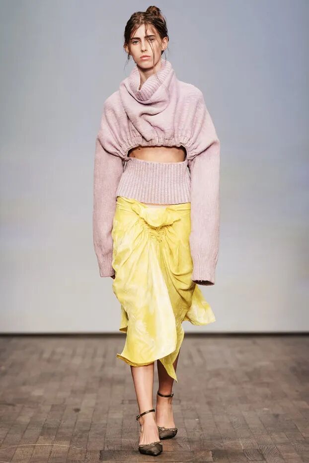 无规则的叠搭层次设计让柔软的针织服装变化无穷,在形态,比例,色彩的处理上也让设计变得和谐,反常规,不对称的叠搭分解常常让人眼前一亮,醒目的视觉效果会让人们脑洞大开。