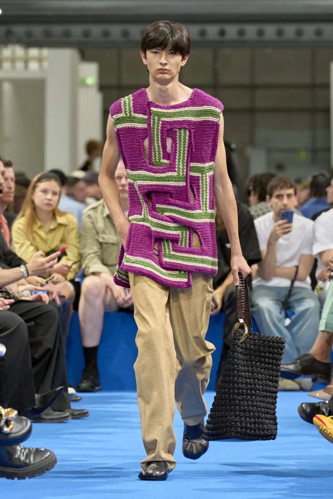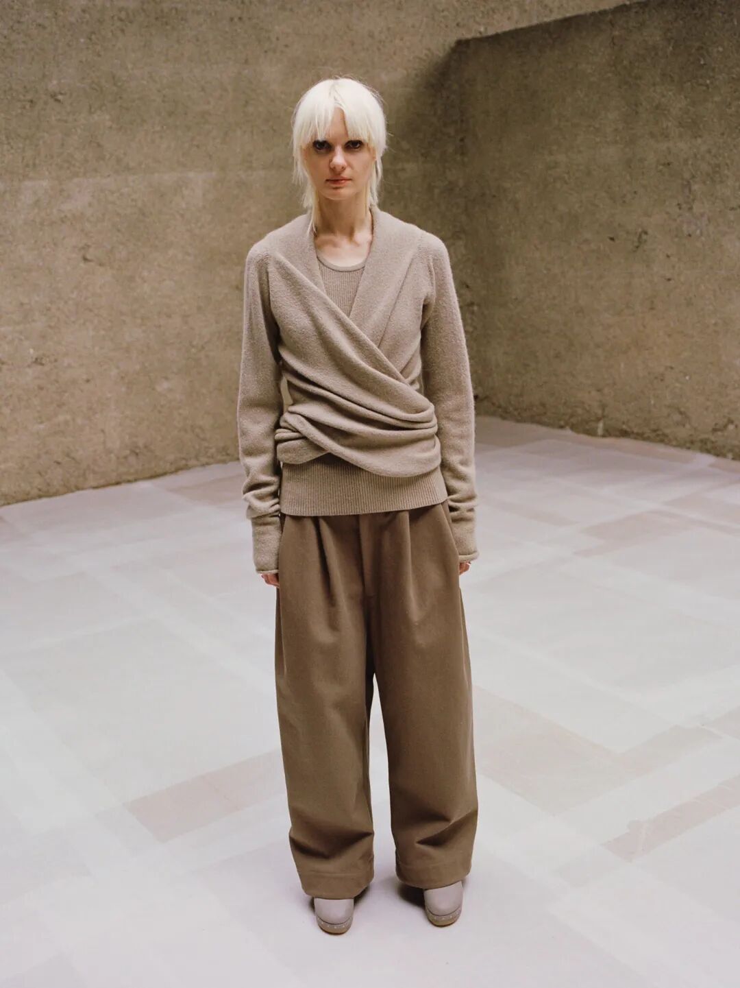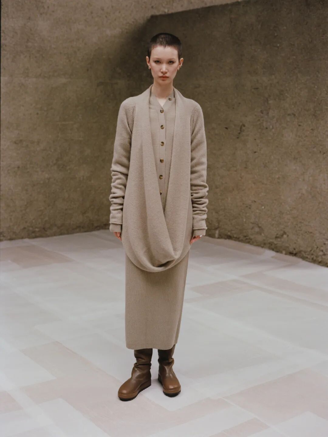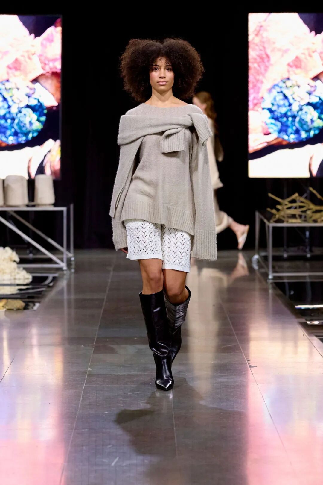 无规则的叠搭层次设计让柔软的针织服装变化无穷,在形态,比例,色彩的处理上也让设计变得和谐,反常规,不对称的叠搭分解常常让人眼前一亮,醒目的视觉效果会让人们脑洞大开。