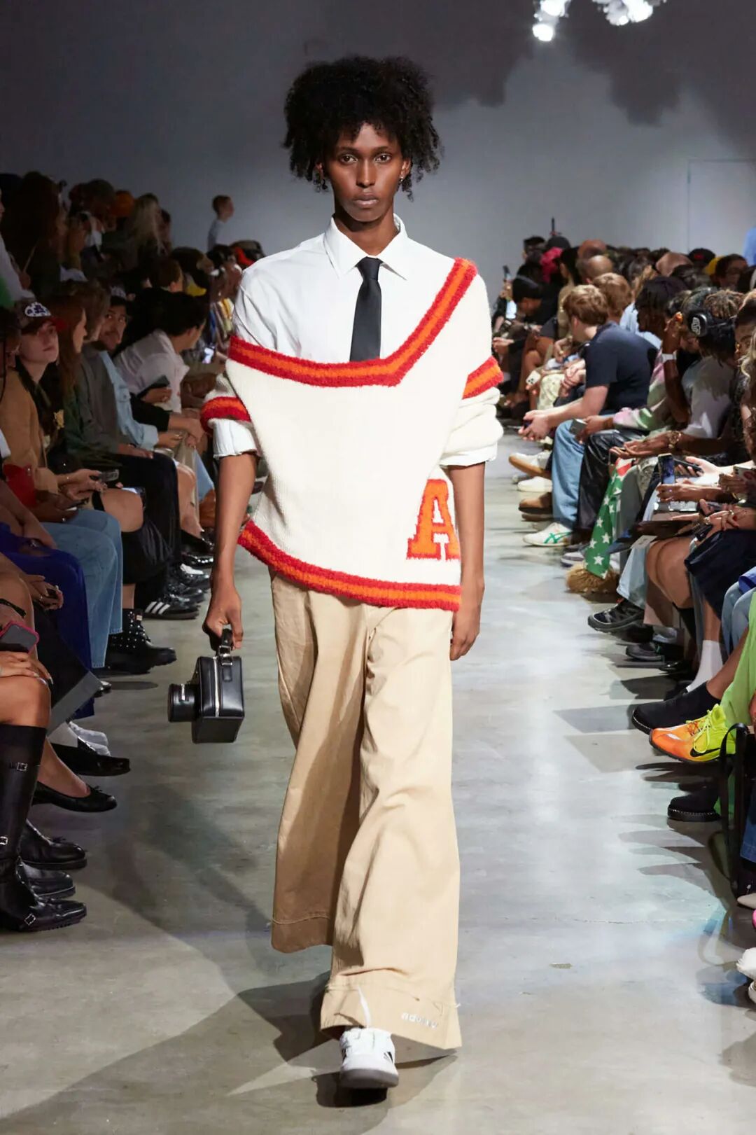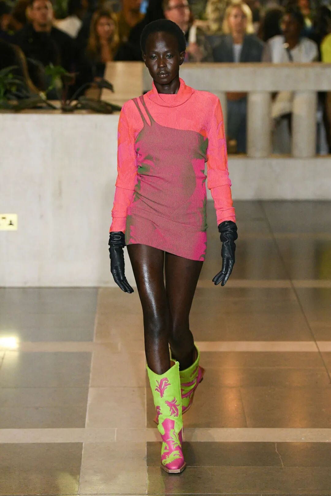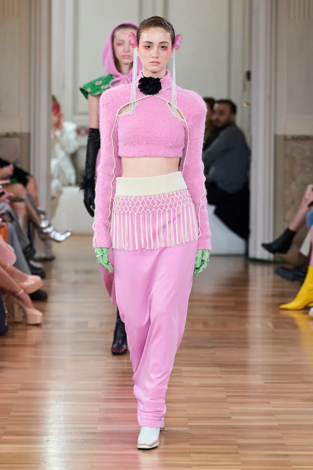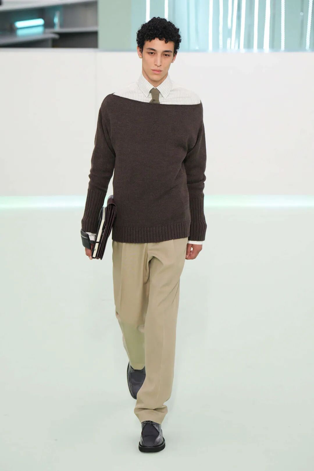 无规则的叠搭层次设计让柔软的针织服装变化无穷,在形态,比例,色彩的处理上也让设计变得和谐,反常规,不对称的叠搭分解常常让人眼前一亮,醒目的视觉效果会让人们脑洞大开。