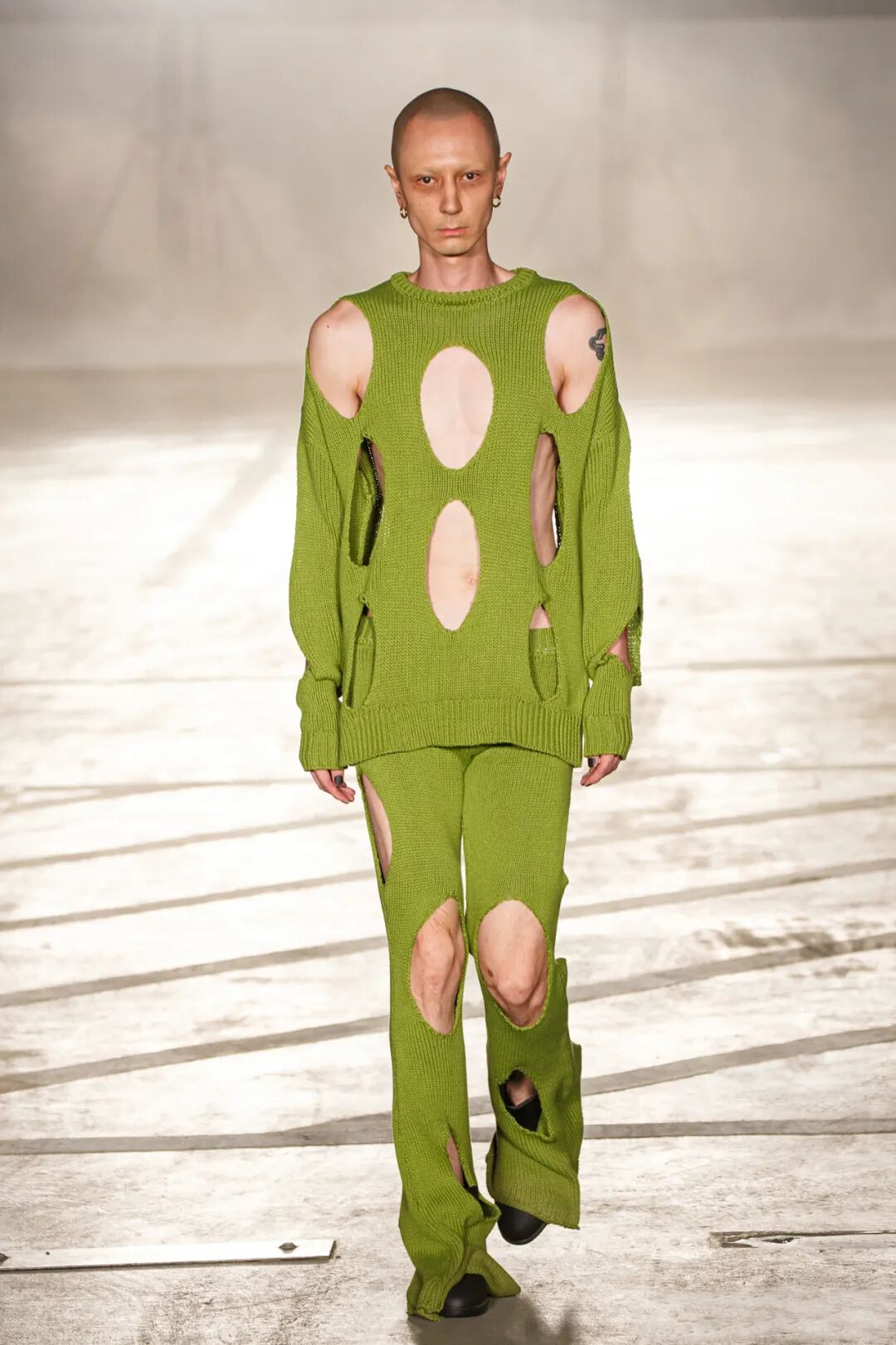 解构主义作为一种设计风格的探索兴起于20世纪80年代,其形式实质是对于结构主义的破坏和分解,因此,具有很大的随意性和个人性的特点。而在针织服装的设计中更可谓是变化和形式多姿多彩,将针织的表现形式玩转的妙不可言。不论是在细节处做镂空解构的设计,叠搭变形产生的解构层次、还是通过结构的细微处分解等都会给人焕然一新的针织视觉感受。下面小编带大家领略三种解构针织服装的设计,感受不同的设计形态~