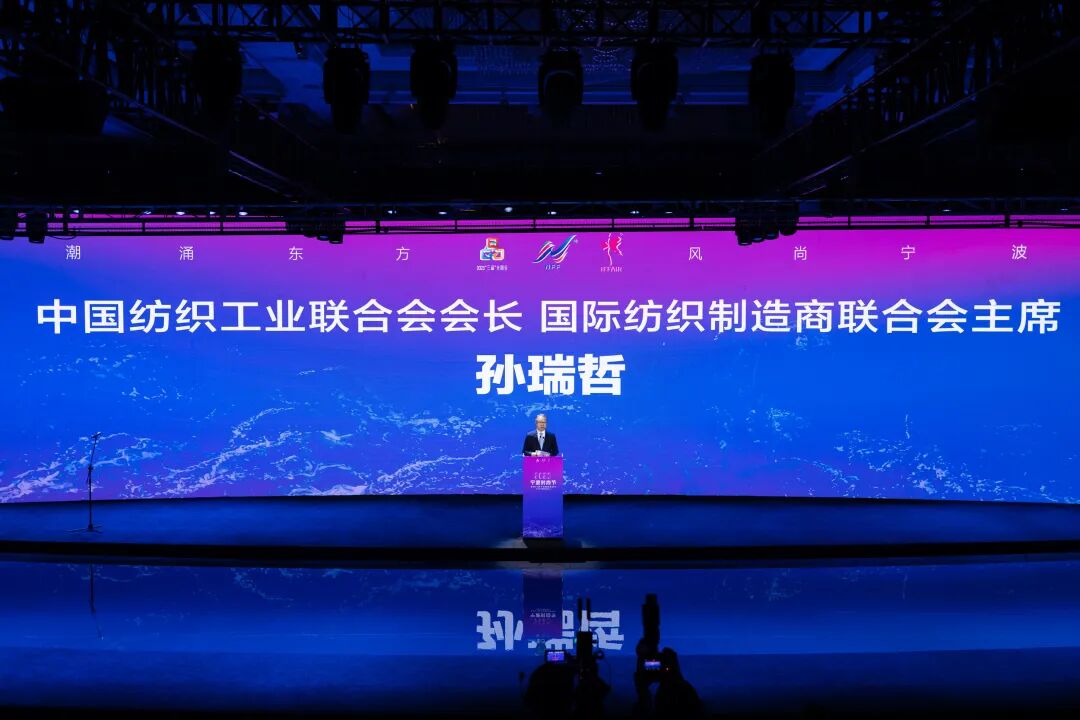 孙瑞哲指出,踏上新时代新征程,以中国式现代化全面推进强国建设、民族复兴伟业,实现新型工业化是关键任务。纺织行业推进新型工业化,就是要以科技、时尚、绿色为方向建设具有完整性、先进性、安全性的纺织现代化产业体系,希望宁波服装产业以此次活动为契机,加快“大优强、绿新高”的产业转型,在现代产业体系建设中勇立潮头,在新型工业化道路上走在前列。现场,浙江省委常委、宁波市委书记彭佳学宣布2023宁波时尚节正式开幕。
