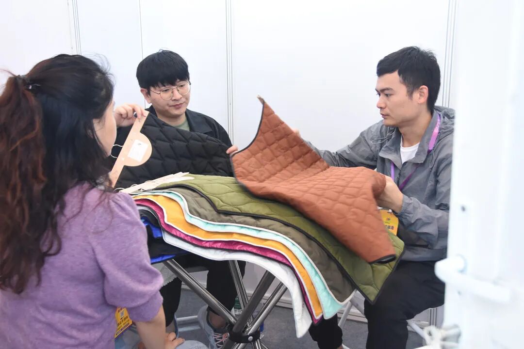 主营团体服装定制的山东耶莉娅服装集团有限公司非常注重面料功能性。“一些抗紫外线的、抗菌的、弹力的面料都给我们留下了深刻印象。”耶莉娅当天就已经与一些意向的供应商做好沟通,根据他们的具体需求后续快递对应的产品册。“效率提高了不少,不用再去单家逐个询问。”他们带着需求有备而来,短短的一天内,便带着成果满载而归。