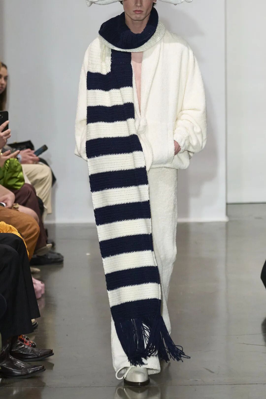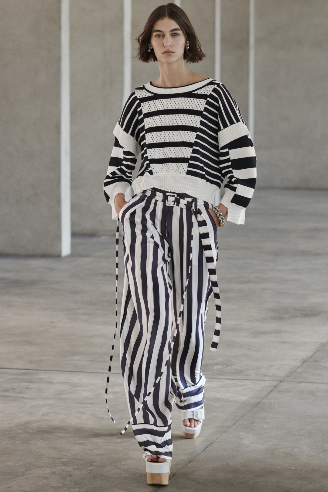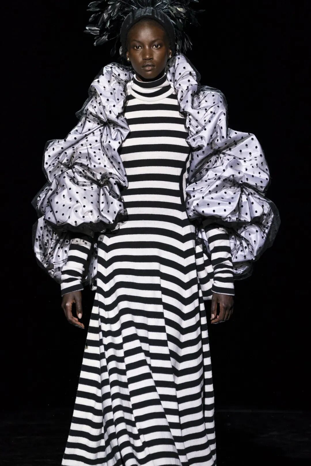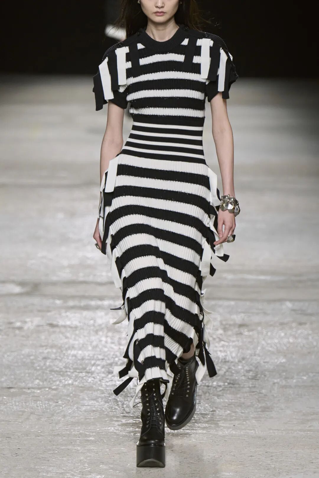 排列均衡的醒目线条以其吸睛的图案特点,使条纹毛衫成为了大众衣橱里必不可少的经典单品。条纹最初因海军服而流行起来,至今已超过100年历史,其表现效果可优雅,可街头,可谓是是经久不衰的经典。在黑白配色的基调上,让我们看看条纹在疏密变化、方向、各部分结构上的适配上能出现什么效果吧~