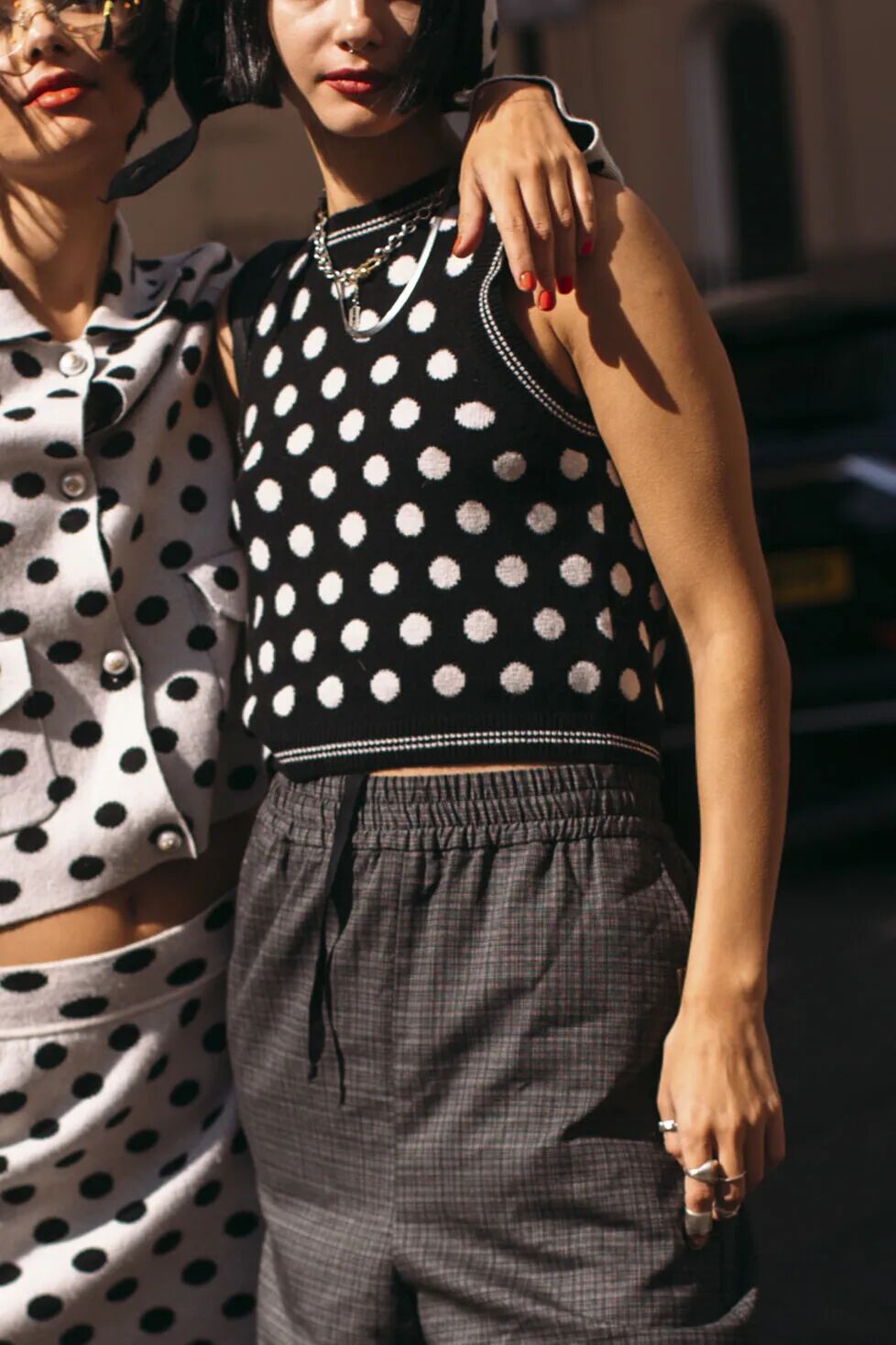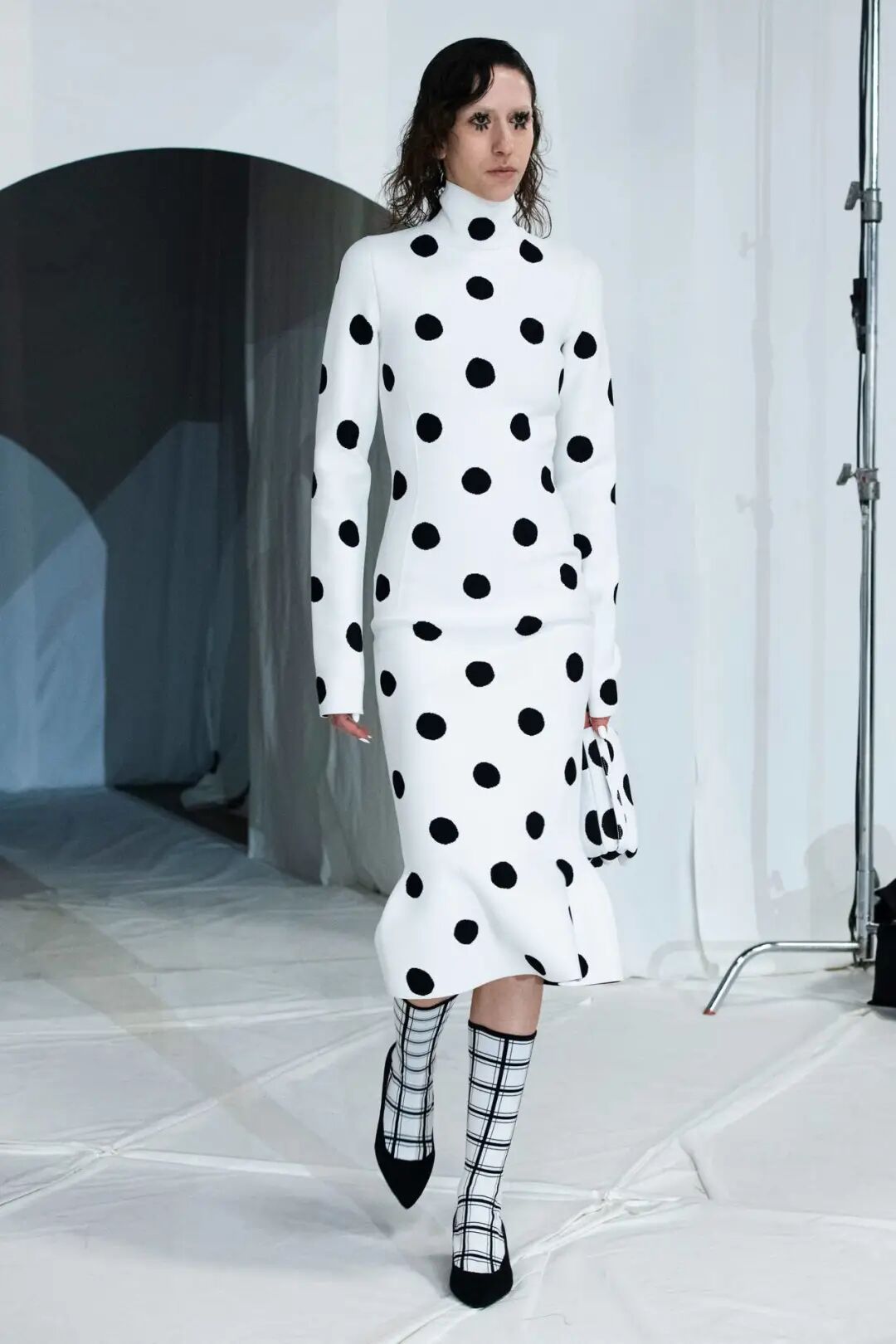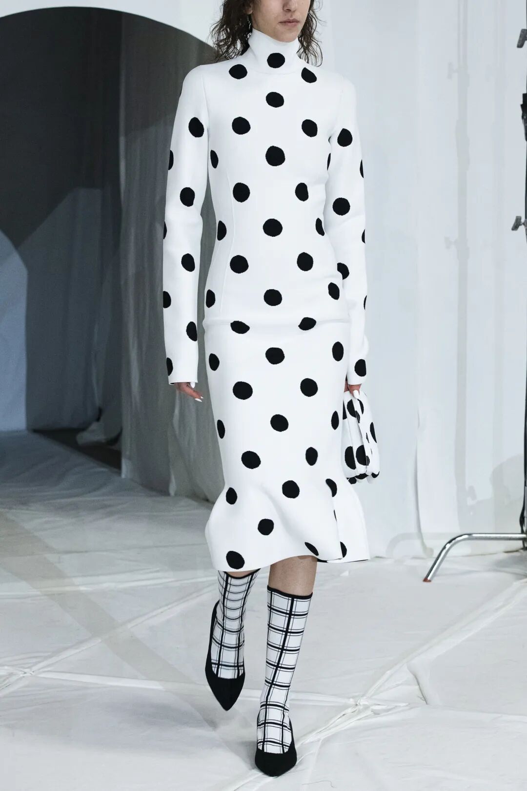时尚不需太费力,波点针织穿起来。在服装设计美学中,波点元素自带的复古氛围可谓是经典的存在。白底黑点、黑底白点,波点元素在疏密有致、大小不一、穿插排布、多元组合等方式上展现其丰富的生命力,让人在其中体味经典、成为优雅。