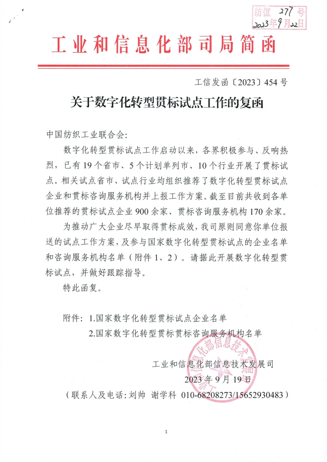 点击蓝字关注我们2023年9月19日,中国服装科创研究院荣列国家数字化转型贯标试...