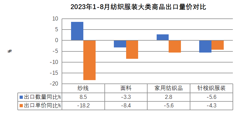 一、去年同期基数降低叠加欧美企业去库存推进,8月纺织服装出口降幅收窄