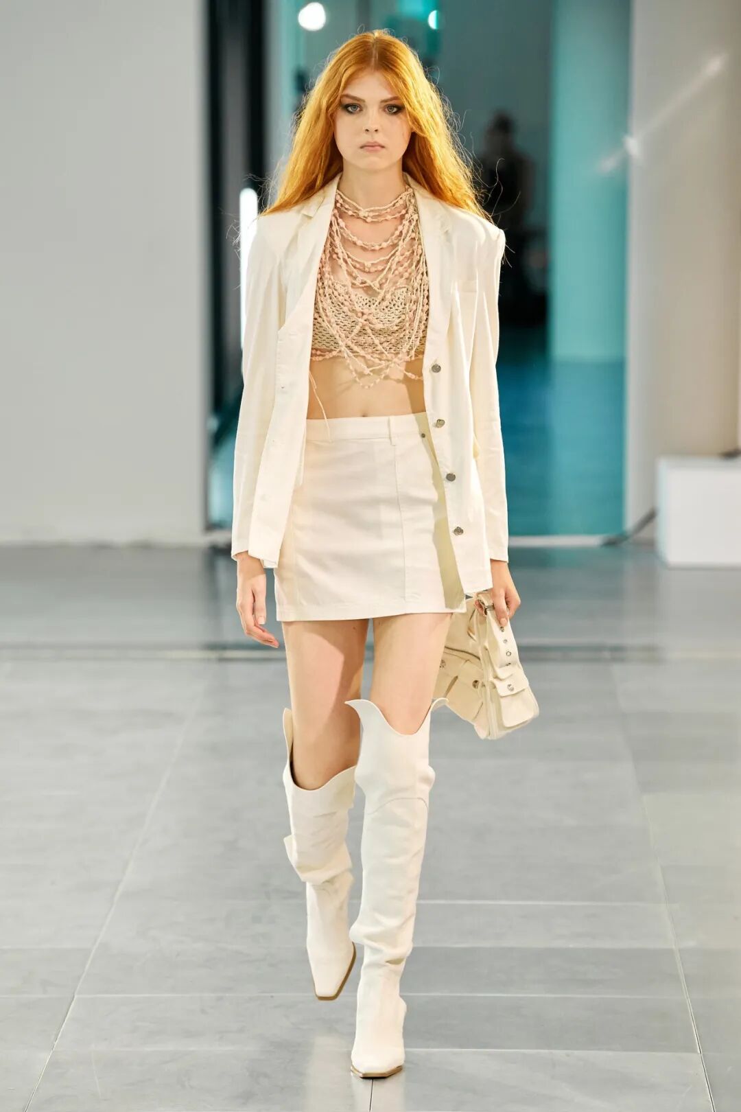 沙漠是自由的,是炽热的。多样的配色,丰富的流苏,大量的牛仔布等等,将复古美学与现代风格连接,无不展现出其品牌调性和主题特点。高露肤度,随风飘扬的流苏和薄纱,这些元素的堆砌,给观众展现出独属于沙漠的野性之美。设计师 Fast 的绚丽呈现,让这属于“未来”的一场梦境,变得无比真实。