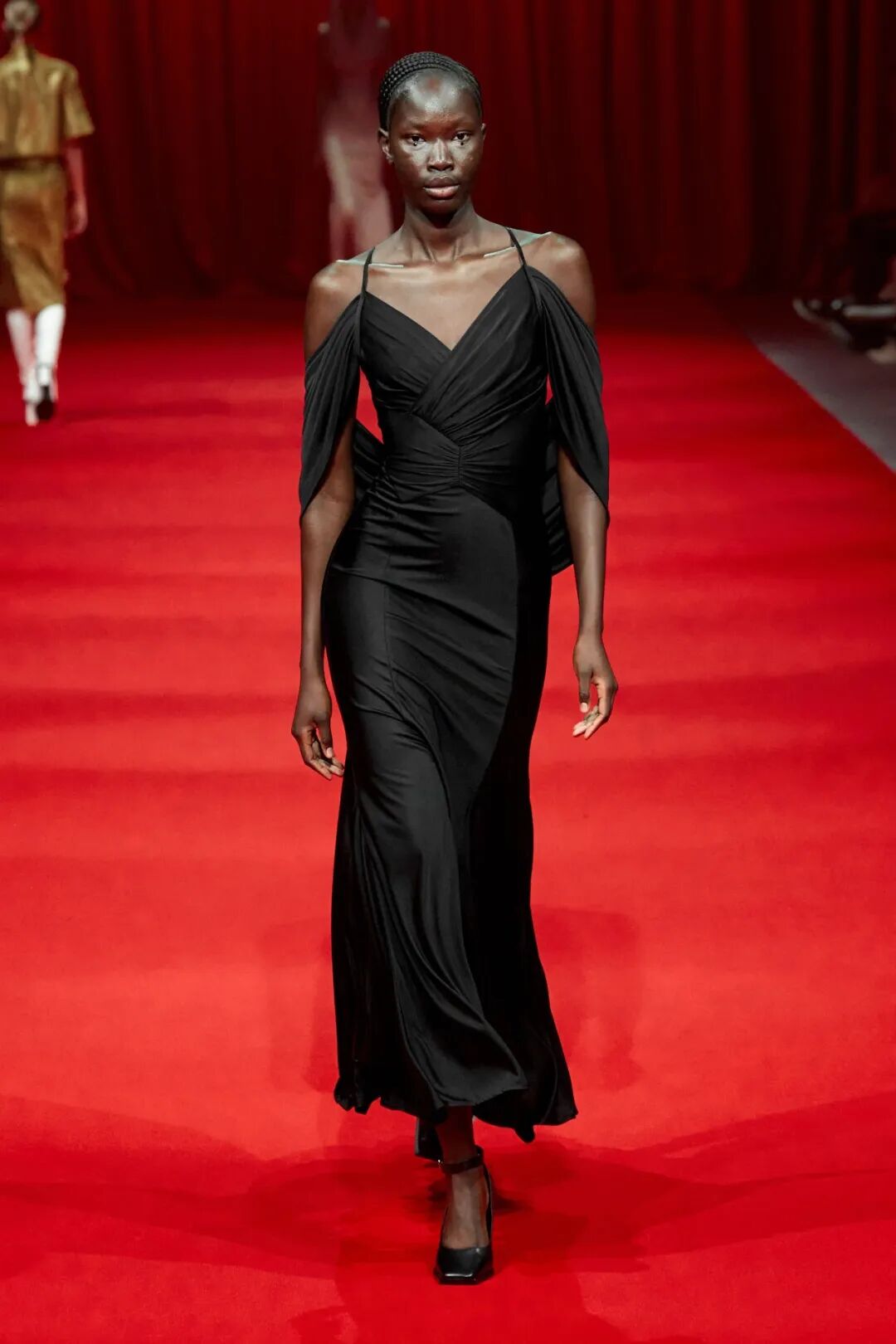 本季,设计师张卉山深受 Luca Guadagnino 电影作品《窒息》戏剧化效果的启发,同时从舞者 Pina Bausch 的舞蹈作品中汲取了色彩和力量的灵感,呈献了一季赞颂和宣扬女性之美的新作品。