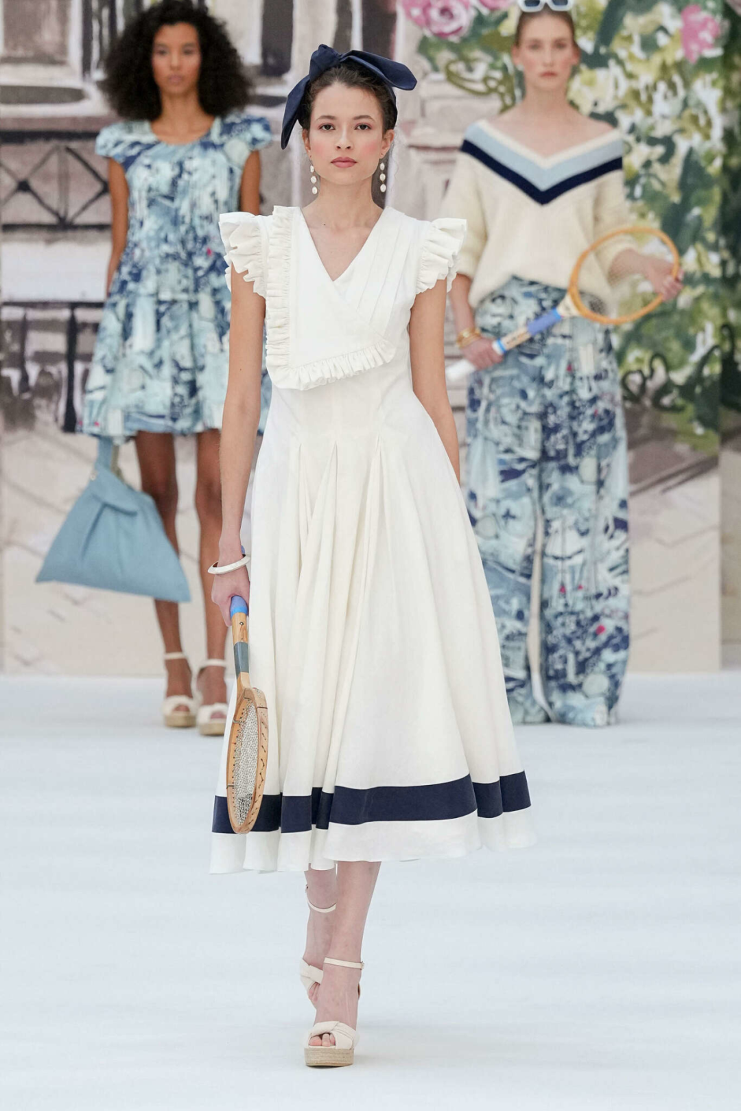 设计师在较为朴素的设计中,巧妙使用各种饰品进行点缀,如墨镜、丝带、吊坠,发箍等等,让时尚感无意间透露出来。亚麻面料,棉质面料,薄纱面料这些都在强调着“高质感”一词,可谓是将轻松时尚感演绎地淋漓尽致。