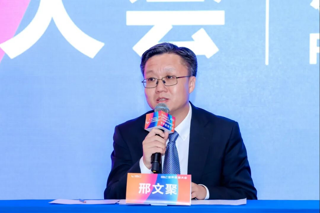 本次新闻发布会还举行了2023世界服装大会会徽发布仪式。据介绍,大会会徽以大会英文名称首字母“GAC”作为表现要点,以象征地球与团结的圆形作为视觉核心,以斑斓色彩代表了世界各国时尚产业的多元性和包容性,寓意“美美与共”“和而不同”的活力与信心。