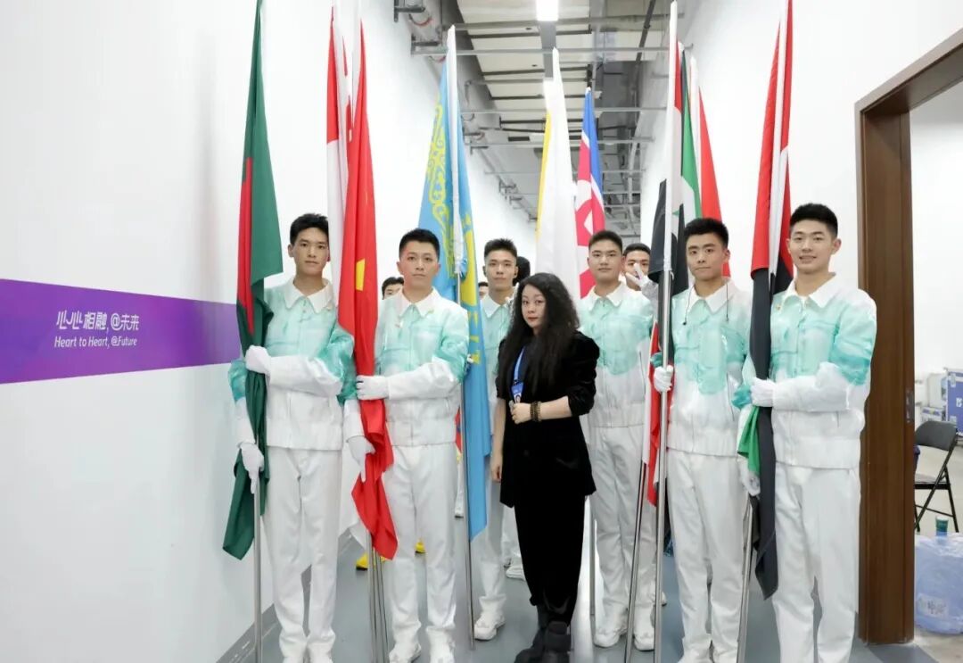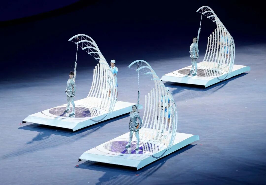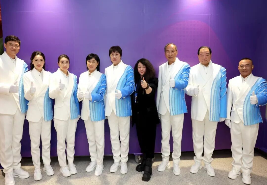 染晨曦,沐夜色,与星辰为伴。半年来,开幕服装总设计丁洁与时间赛跑,一千次振翅只为精彩瞬间。开幕式上,映入眼帘的“开幕仪式/会旗执旗手”服装,展现出本次亚运会所特有的东方意蕴:服装上“水晕光圈与运动赛道融合”的设计,搭配3D打印的“如意吉祥扣”,中式与未来科技感相融合,令着装的功勋运动员们展现江南韵味与写意美感形象而生动。当中国运动员孙海平、张蓉芳、徐海峰、叶乔波、楼云、郭晶晶、仲满、罗雪娟手持亚奥理事会会旗入场的时候,庄重而神圣的氛围使得此款设计显现出东方韵味与亚运精神。
