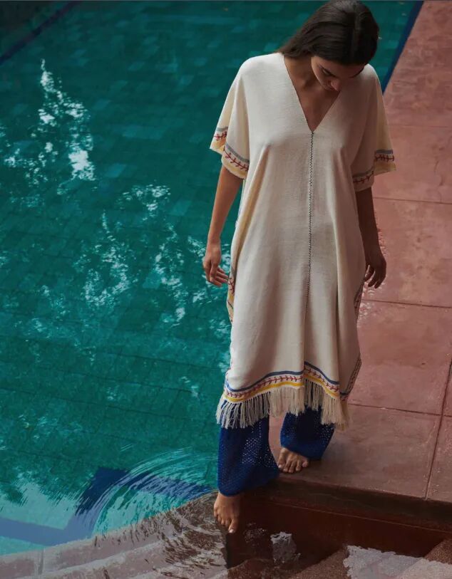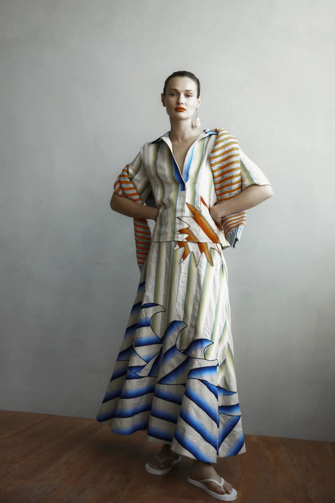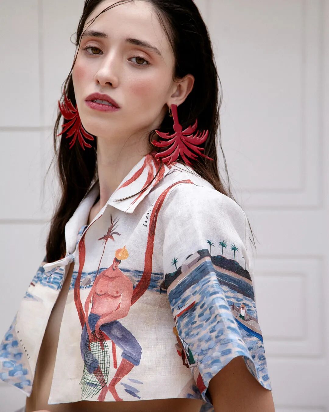 印花和图案为该主题带来了新意,如墨西哥品牌Olmos y Flores的稚拙派海滩风景插图、Sea New York的个性拼接设计。