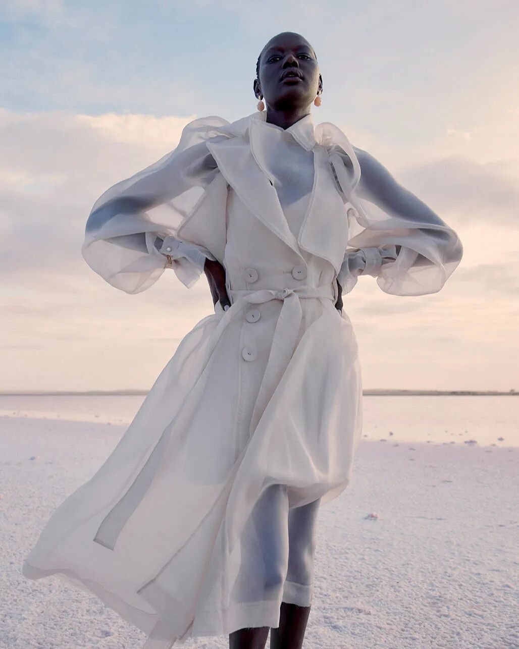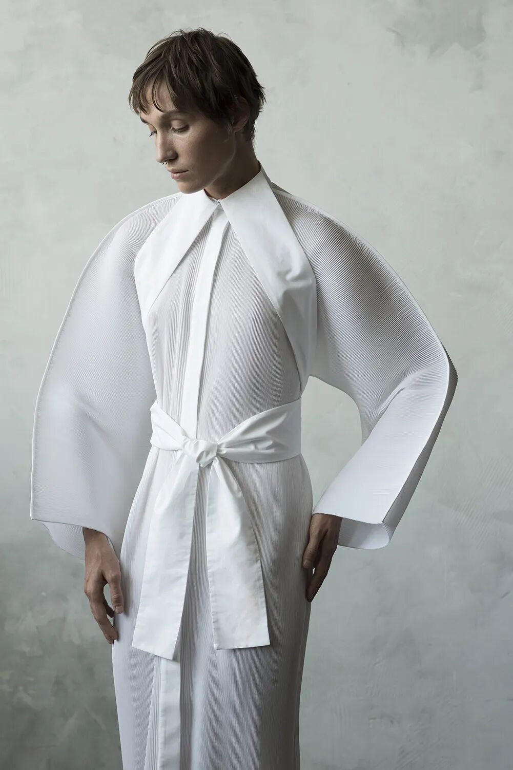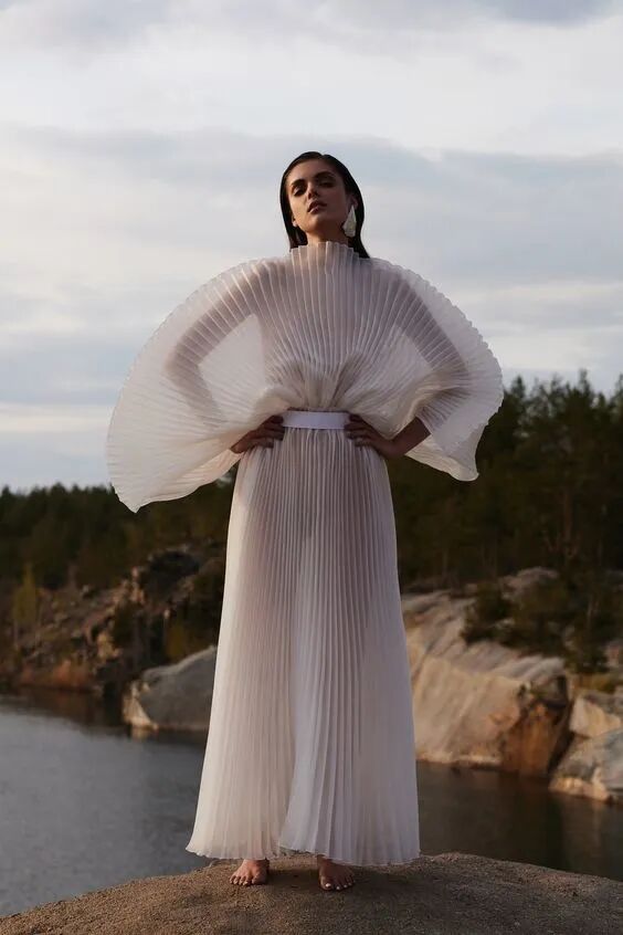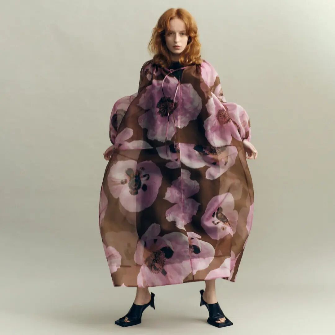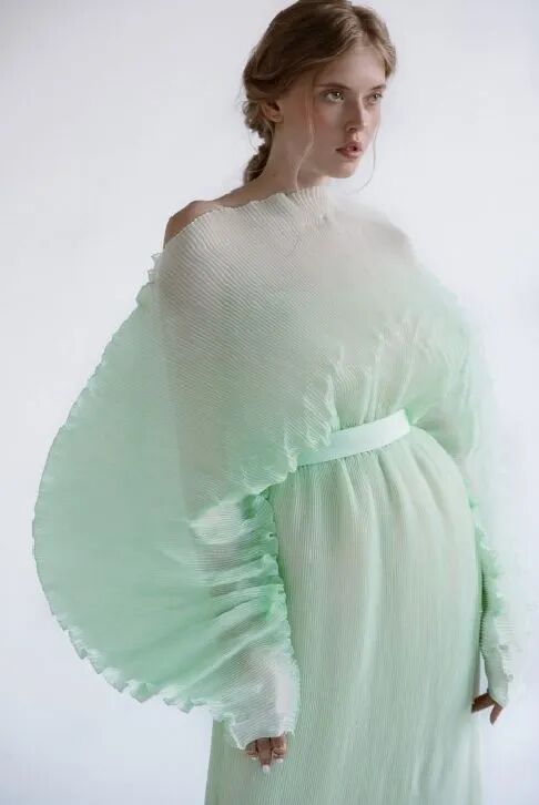 尝试百褶和镂空设计,增加层次感和立体感。建议将经典而简洁的廓形作为空白画布,尽情发挥色彩的魅力。覆盖全身的长款版型和个性衣袖可增加戏剧感,同时也能满足#保守市场的需求。