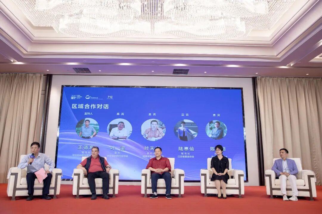 对话交流是服装行业区域合作中不可或缺的环节,在这里各地方服装商/协会共同探讨区域发展问题的解决方案和创新思路,为地方行业发展注入新的活力和动力。产城融合是一个系统漫长、需要坚持的过程,吸收先进经验可以为这一发展进程提速,少走弯路。本次区域合作对话,由河北省纺织与服装行业协会秘书长王德海主持,安徽省纺织行业协会会长叶梁、湖南省服装行业协会执行会长叶天毅、江苏省服装协会秘书长陆惠仙、温州市服装商会秘书长陈琦翔作为对话嘉宾就如何实施区域合作协同、在区域协同发展过程中遇到过哪些问题及解决方案等议题展开讨论。