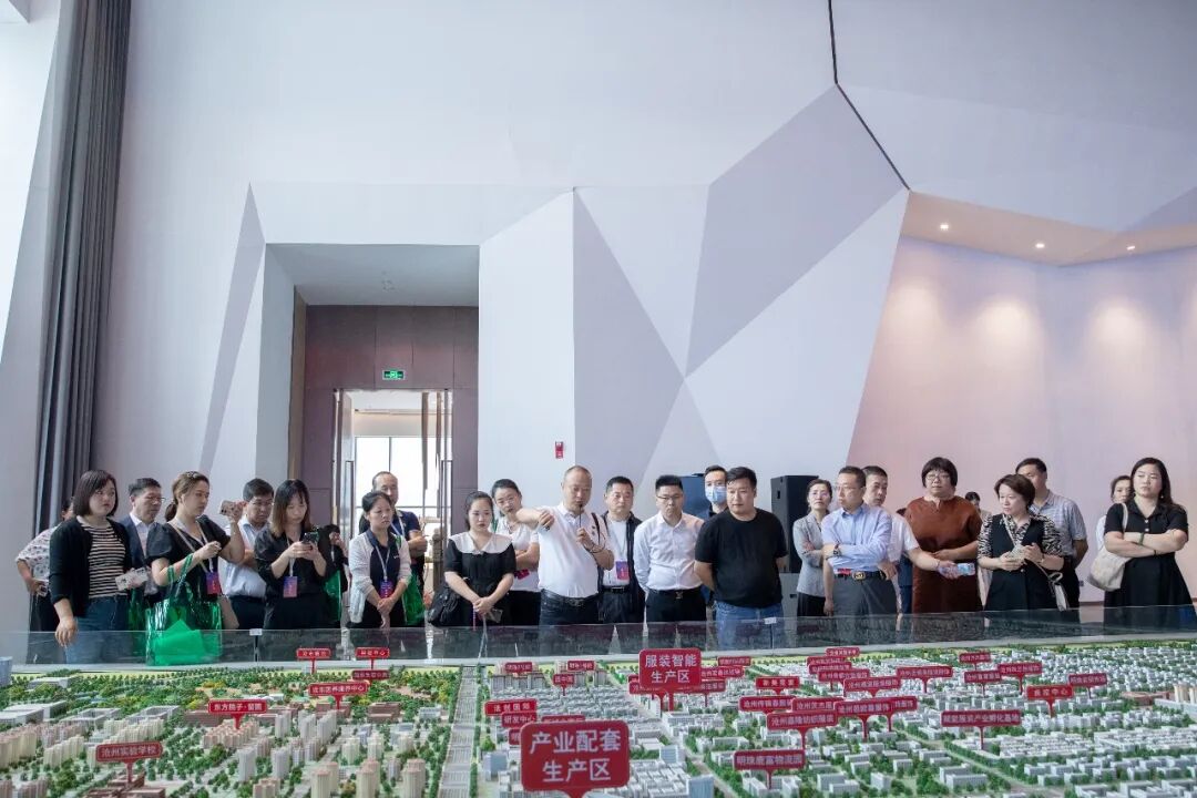 在明珠国际服装生态新城,嘉宾了解到这里已成功引进了领雅、法创、首肯、万杰等知名服装生产企业,二期建成后总共能安置近万家服饰企业,年产服装可达3亿件、饰品4亿件,产值超千亿元,提供30余万个就业岗位。同时,明珠国际服装生态新城还加快打造了中国“羽绒服+棉服”产销基地,展现出京津冀协同发展的重要承接作用。