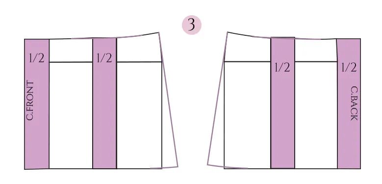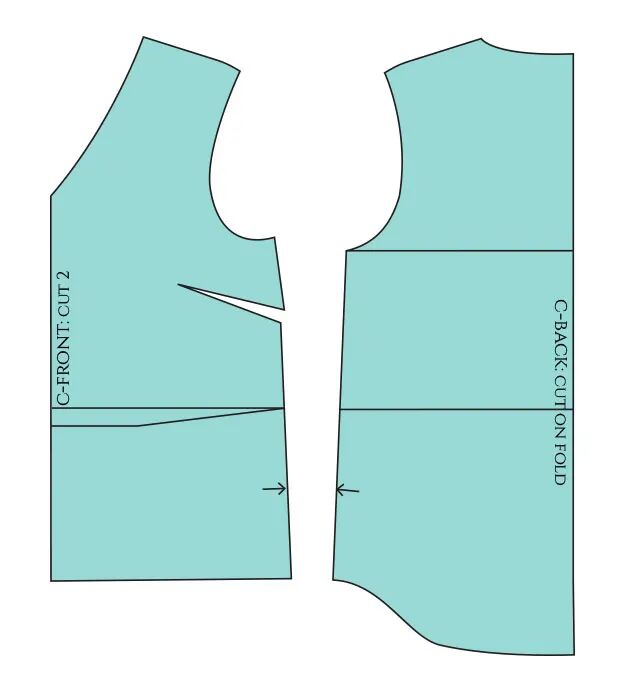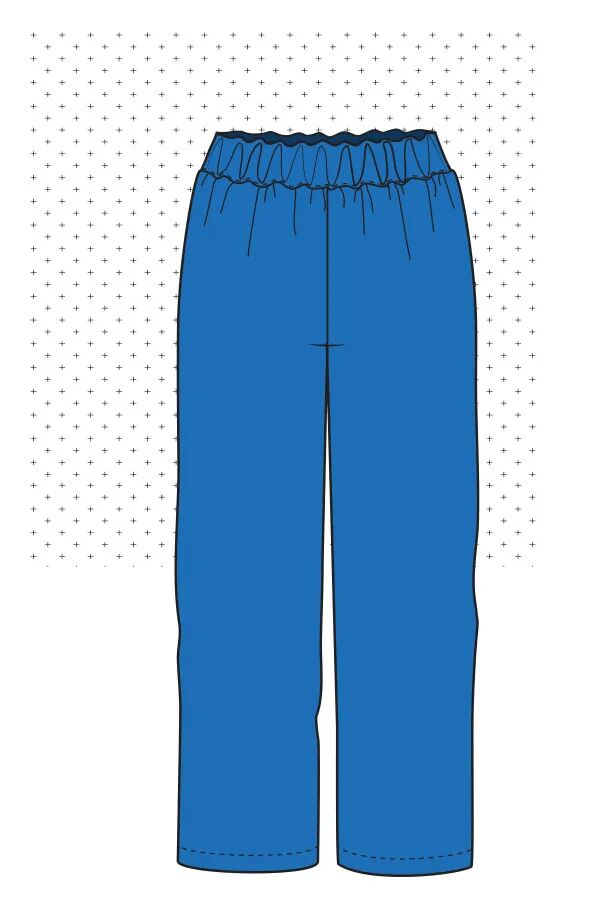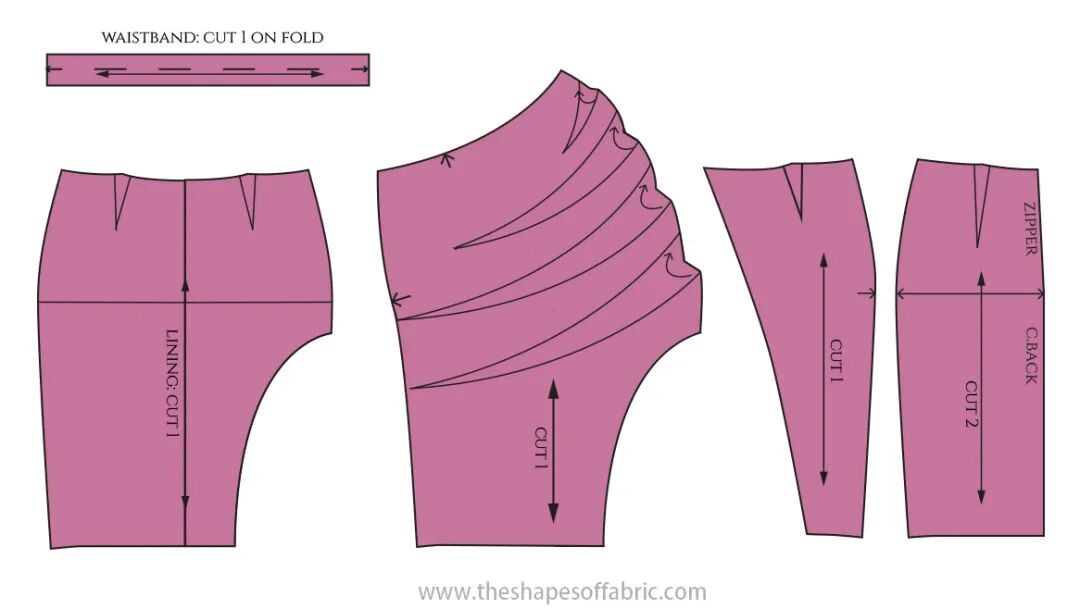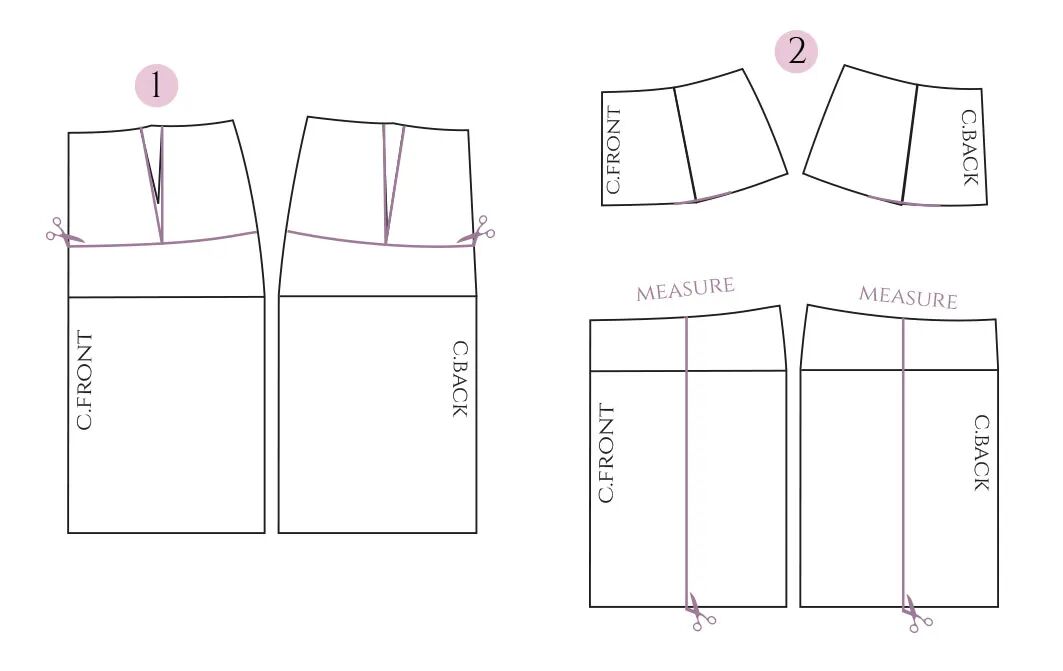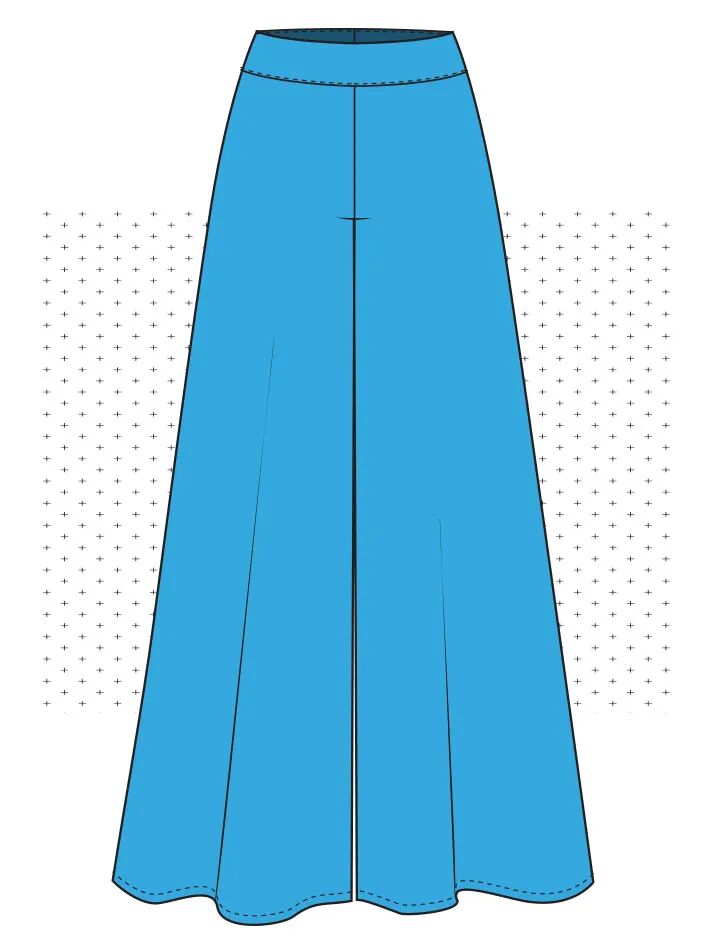 为了适合这些没有拉链的裤子,腰部必须至少与臀围一样宽。如果你喜欢更舒适的合身,你可以在开始之前给裤子的图案增加一些宽松量:降低胯线并在两侧增加一点宽度。