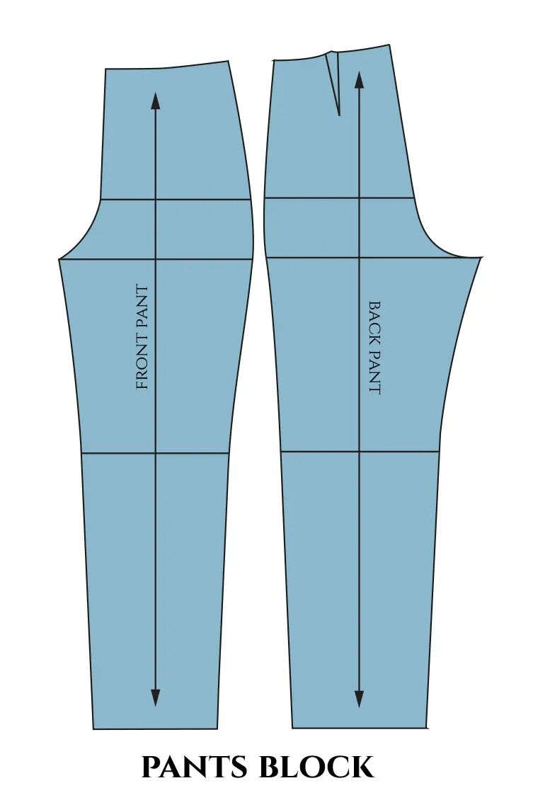 使用裤原型,你可以创建不同的裤子图案。它们可以是经典或休闲裤。你可以制作短裤、七分裤或长裤。将此块与紧身胸衣图案结合起来,你将获得连身衣图案。