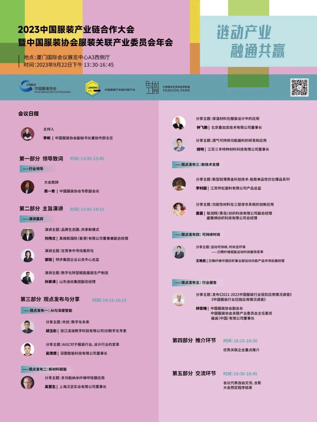 倒计时3天!2023中国服装产业链合作大会暨中国服装协会服装关联产业委员会年会日程安排