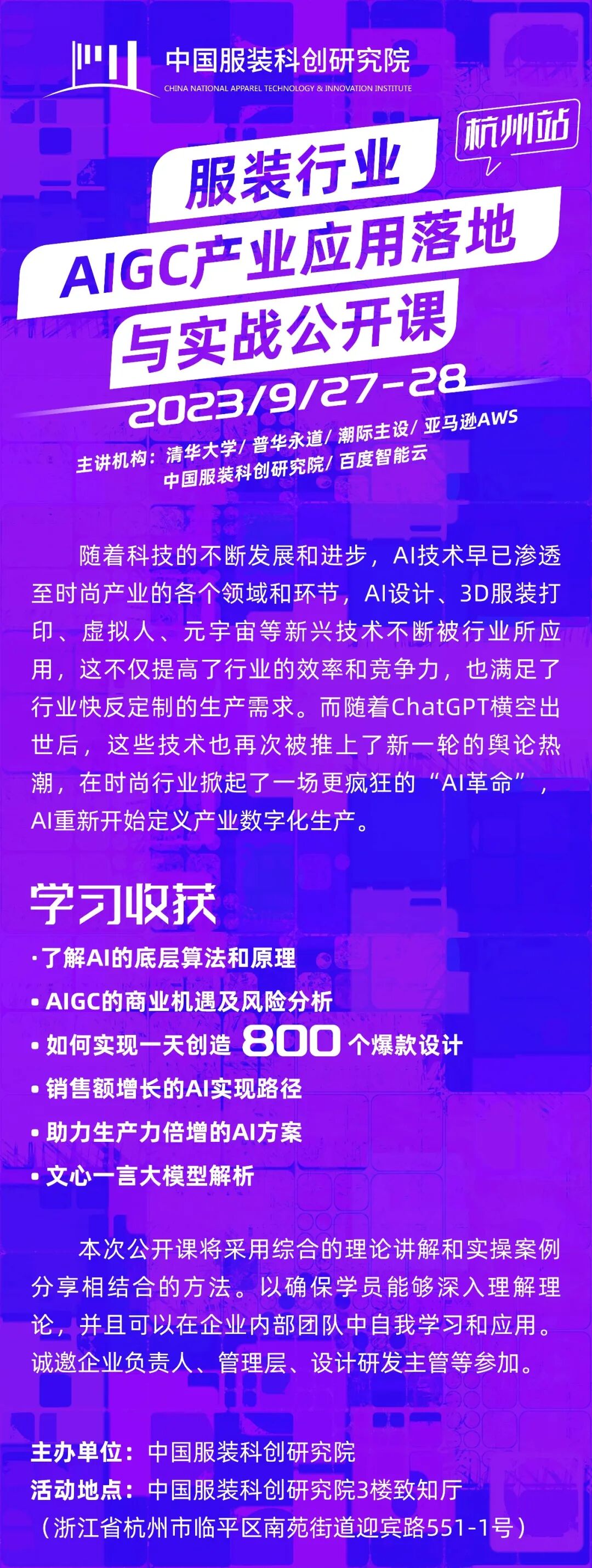 通知公告|服装行业AIGC产业应用落地与实战公开课(杭州站)