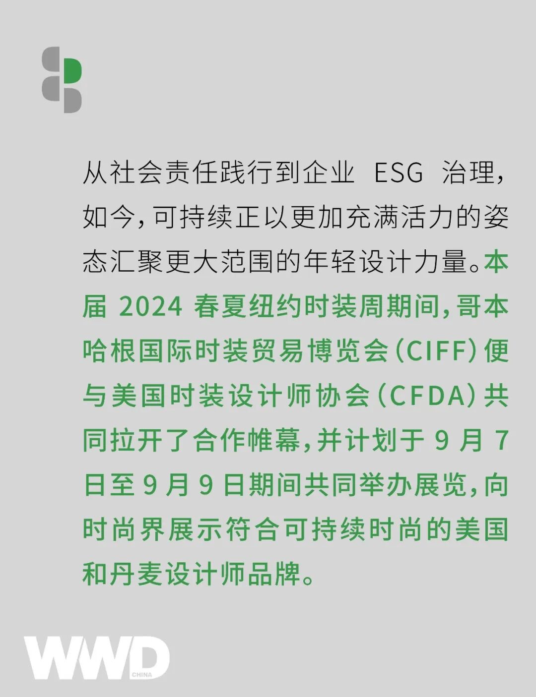 CIFF 总监 Sofie Dolva 总结道:“虽然筹备时间很长,但我们已经收到很多社会层面的积极反馈,我们支持真正践行可持续发展的设计师,所以,这次展览对设计师来说是一次至关重要的好机会,我们都在朝着共同的目标迅速前进。”