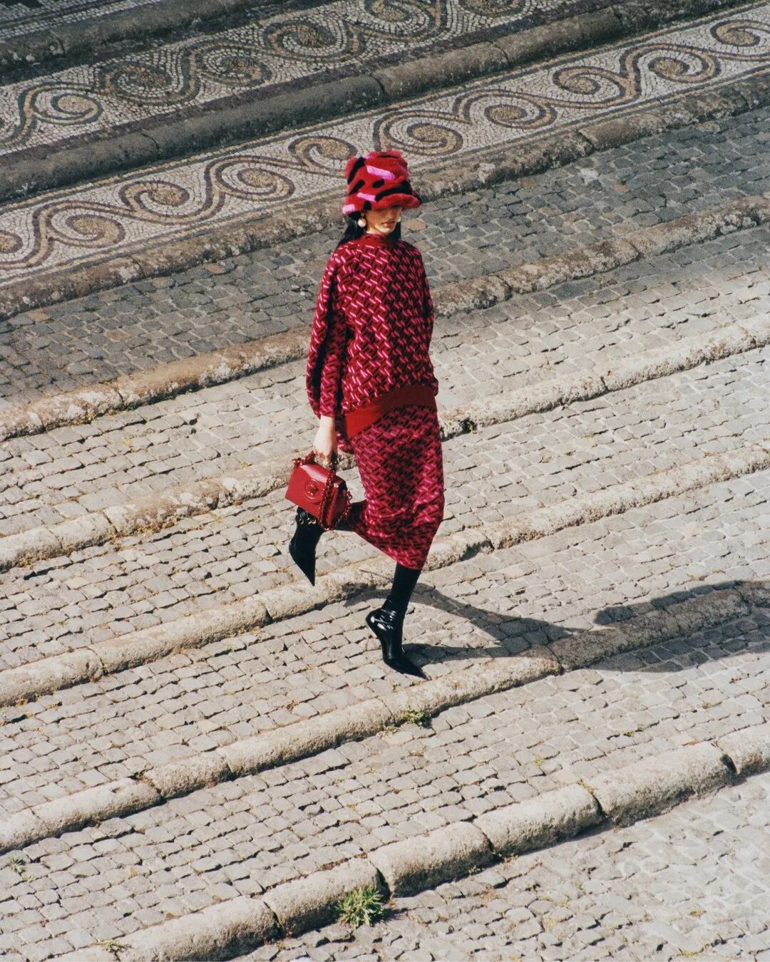 包包、帽子也选洋红,视觉效果更加丰满,不过不太适合日常穿,拍照会比较出彩。