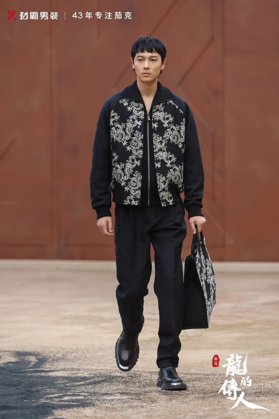劲霸男装作为“中国茄克”的定义者,不仅在国内市场享有盛誉,更是在国际舞台上展现出了强大的影响力。这不仅是因为劲霸男装拥有着极致的设计理念和卓越的品质,更是因为该品牌背靠华夏文明古国,致力于传承和发扬中国传统文化。劲霸男装不仅仅是中国茄克行业标准的制修订者,还与中国流行色协会联合设立全国唯一的“中国茄克色彩研发基地”,担负着中国茄克流行趋势的研究、分析。而上万茄克版型数据库的建立与持续动态更新更是确立了劲霸男装在茄克领域的领导地位,致力于为消费者提供更合身、更舒适的茄克产品。9 月 9 日中原茄克大秀,劲霸推出了一系列令人惊艳的秀款,以龙的传人为主题,为中国茄克设计注入了新的色彩、灵感和生命力。