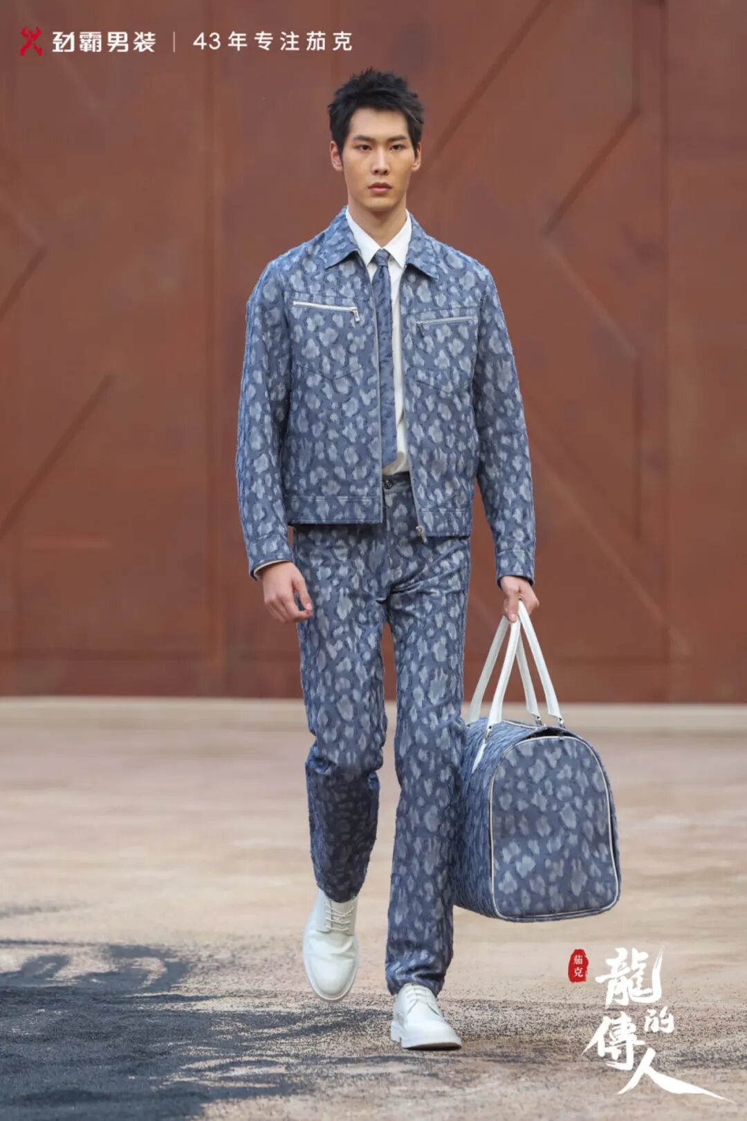 行走的“中国茄克”缓缓登场,散发着令人神往的东方气度。“龙”归故里,向新而升,用时尚书写东方气度。中原本是龙文化的发祥地,同时为应和即将来临的龙年,不同形态的龙的设计展现,成为本次大秀劲霸男装深化东方气度在新时代的实体化书写亮点。通过精心雕琢的细节和线条,呈现出了极具魅力的潇洒和雄姿,彰显出现代男性的自信和魄力。